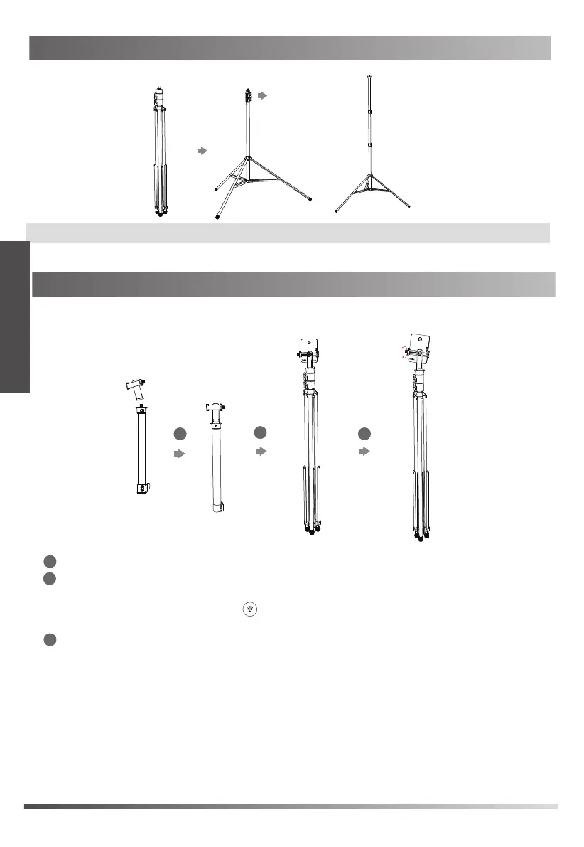 Hinweis: Die Stativhöhe kann von 1,00 Meter (3,28 Fuß) bis 2,80 Meter (9,19 Fuß) eingestellt werden.