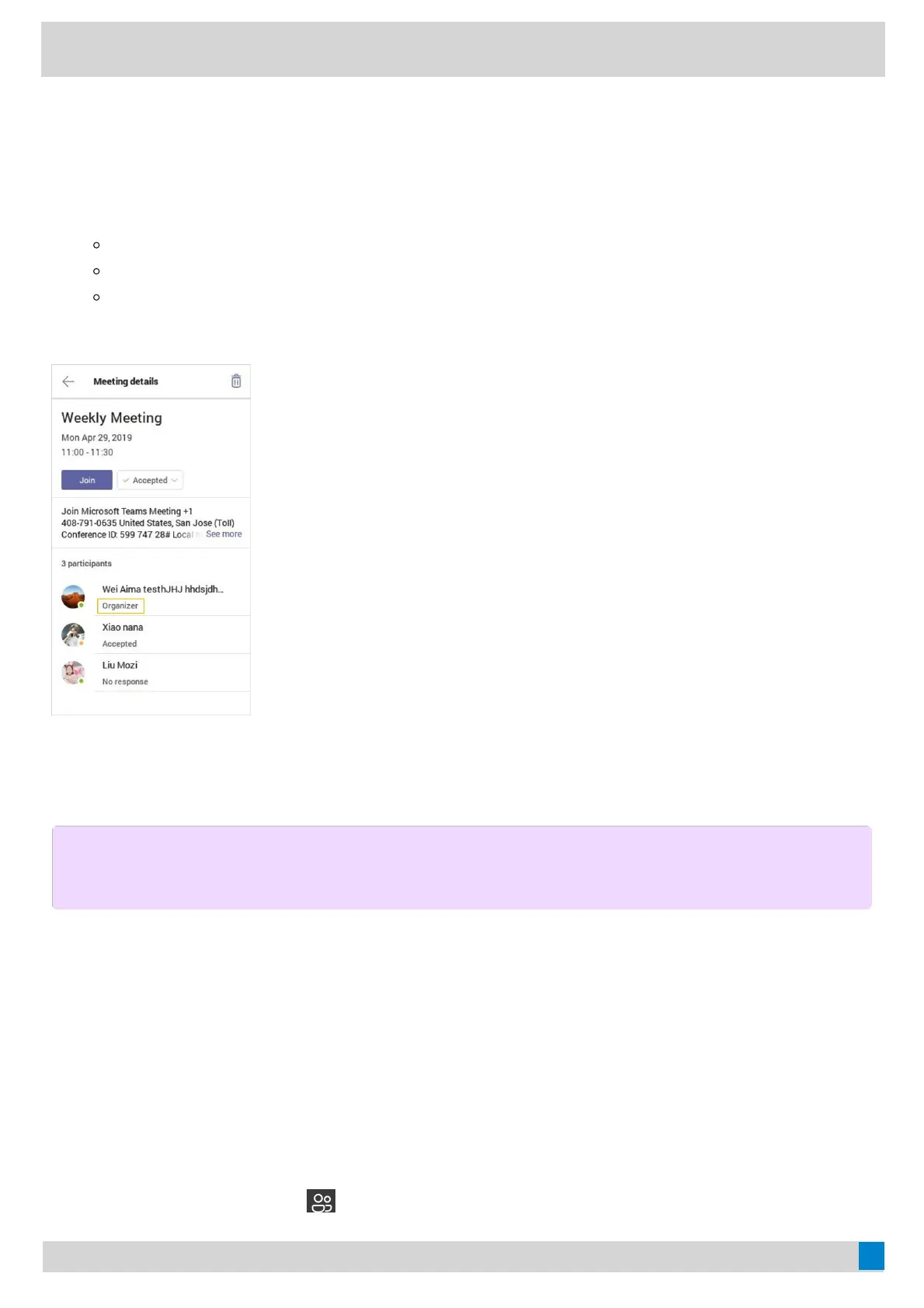 1. From the CalendarCalendar screen, tap the desired meeting.