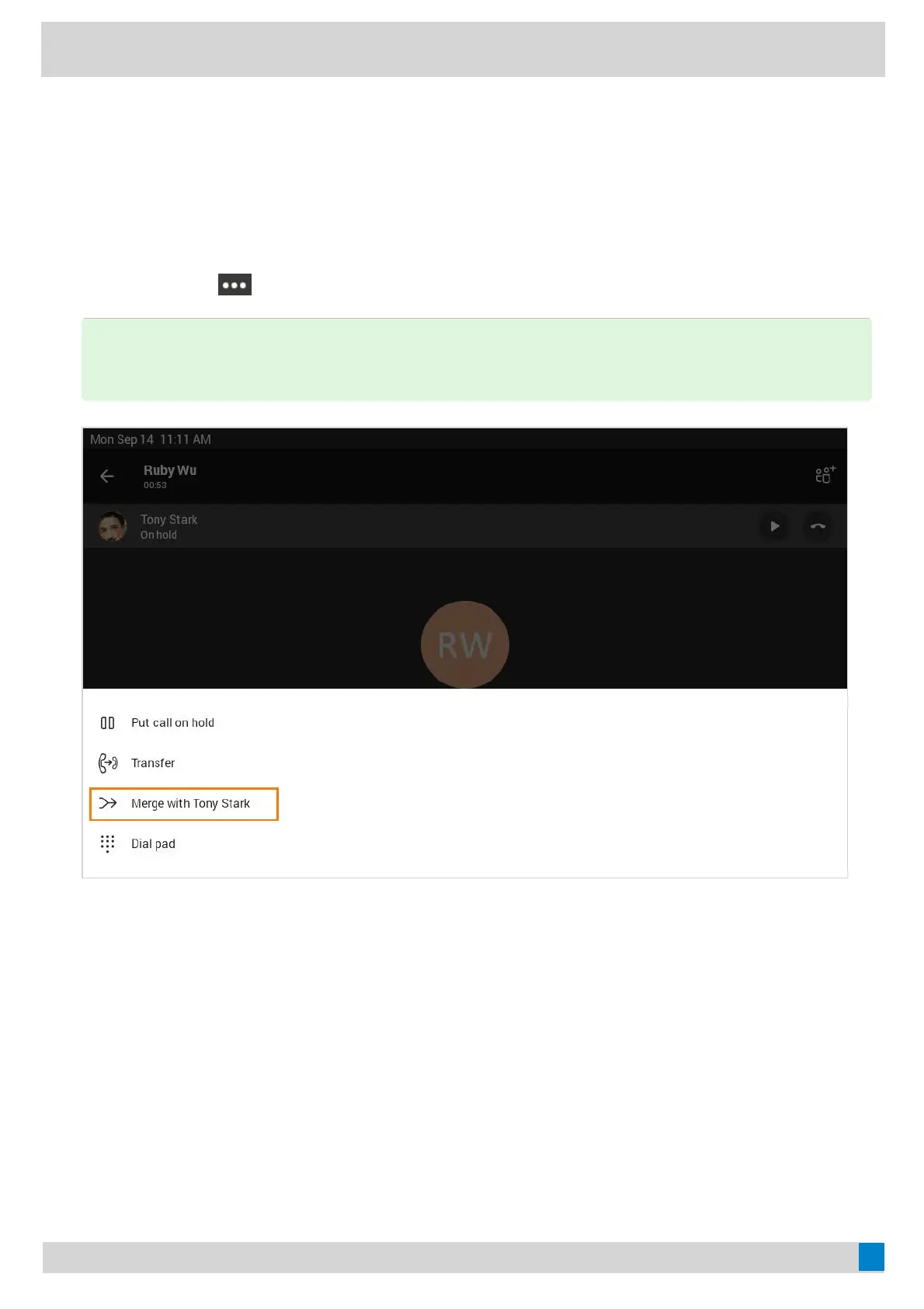 If multiple calls are on hold, you can choose one to merge.