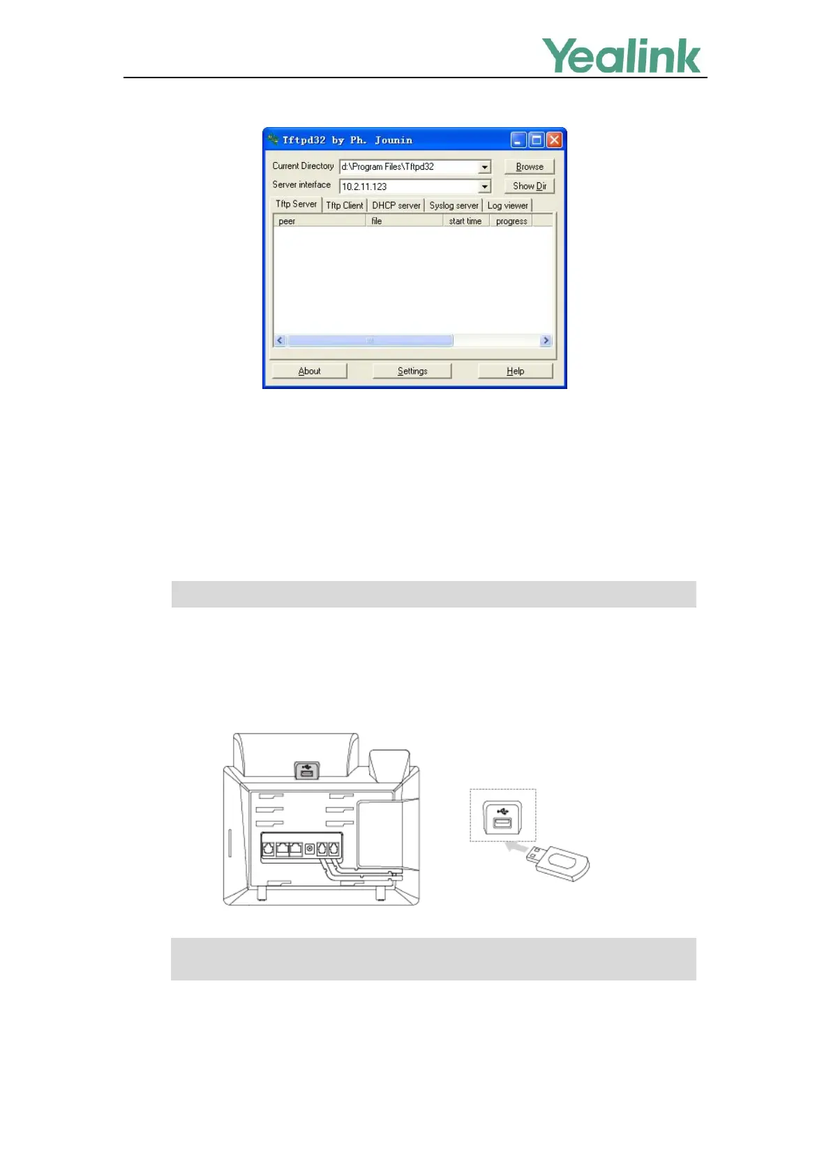 This section shows how to connect the USB flash drive to the IP phone. The USB flash drive should be