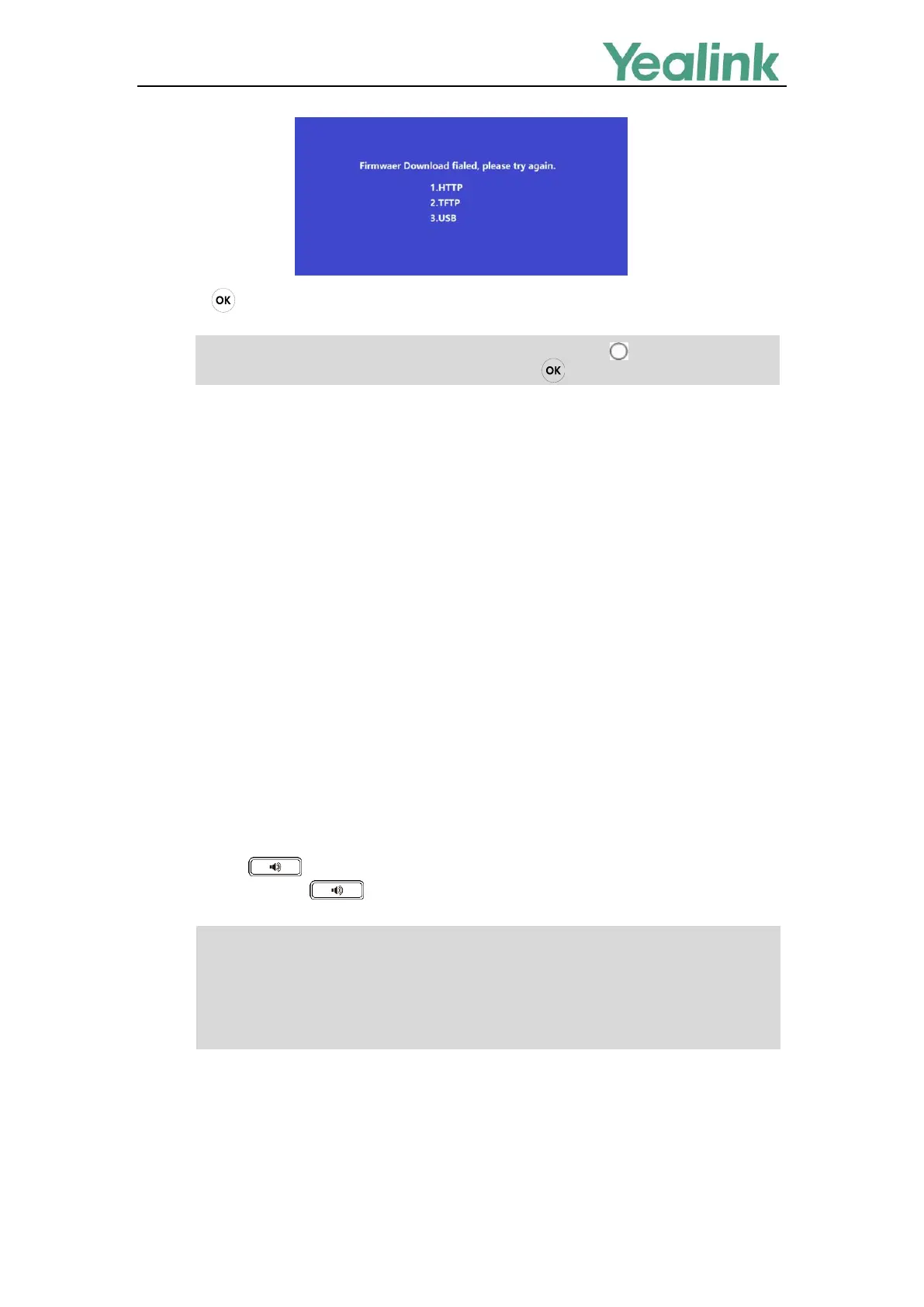 1. Long press (Speakerphone key) and reconnect the power adapter to trigger the recovery