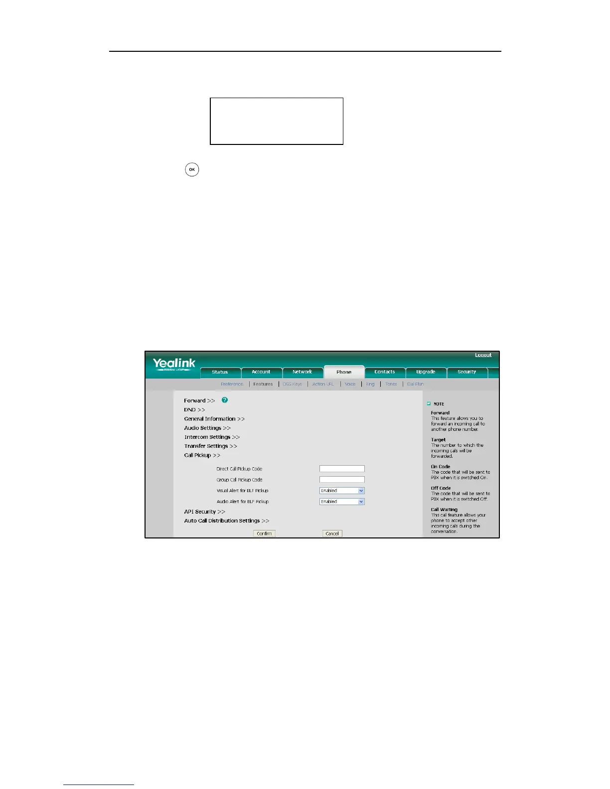 for BLF pickup feature to allow the LCD screen of the monitoring phone to display the