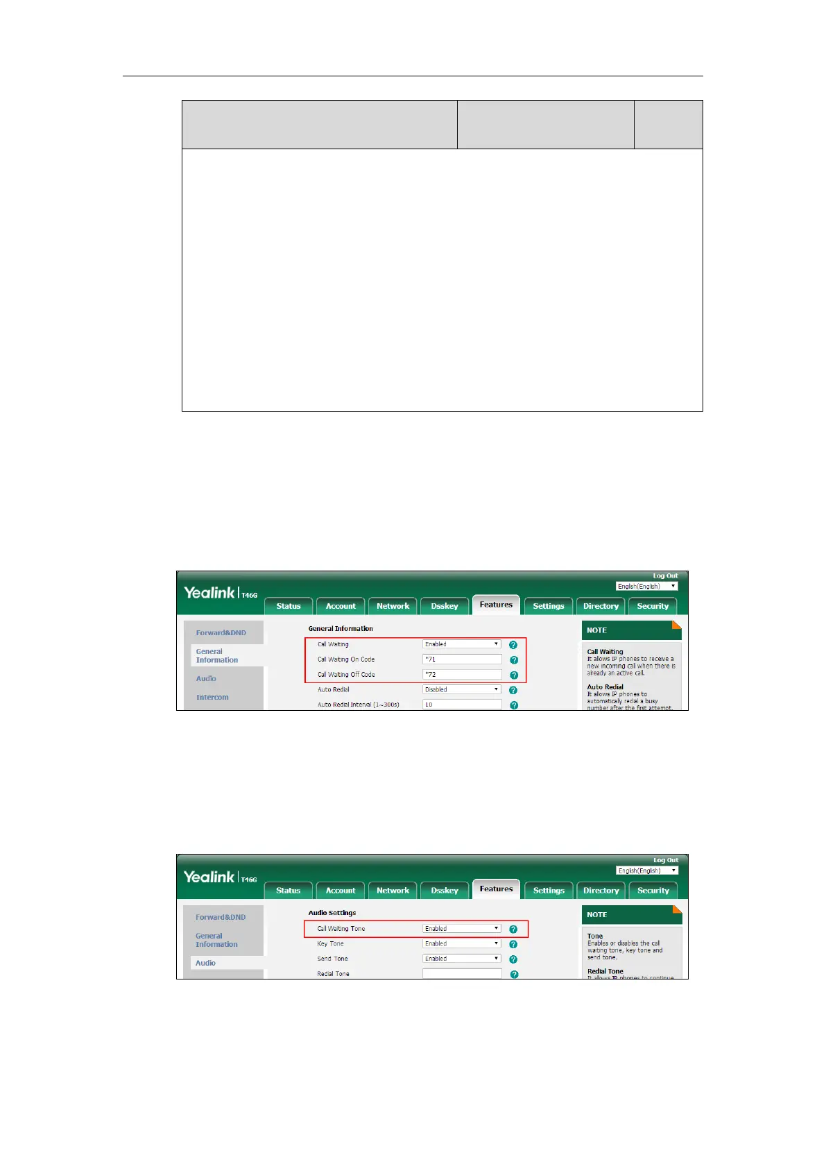 2. Select the desired value from the pull-down list of Call Waiting Tone.