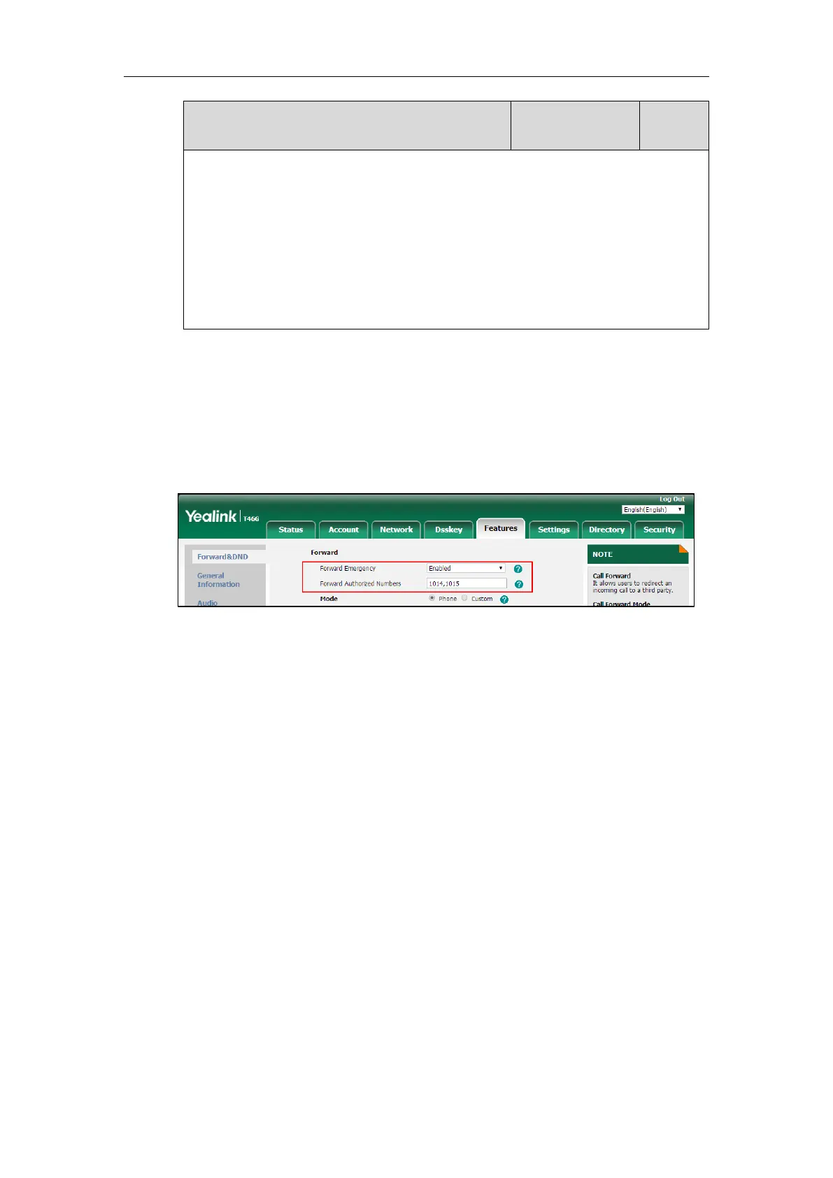 To specify the authorized numbers when call forward is enabled via web user interface: