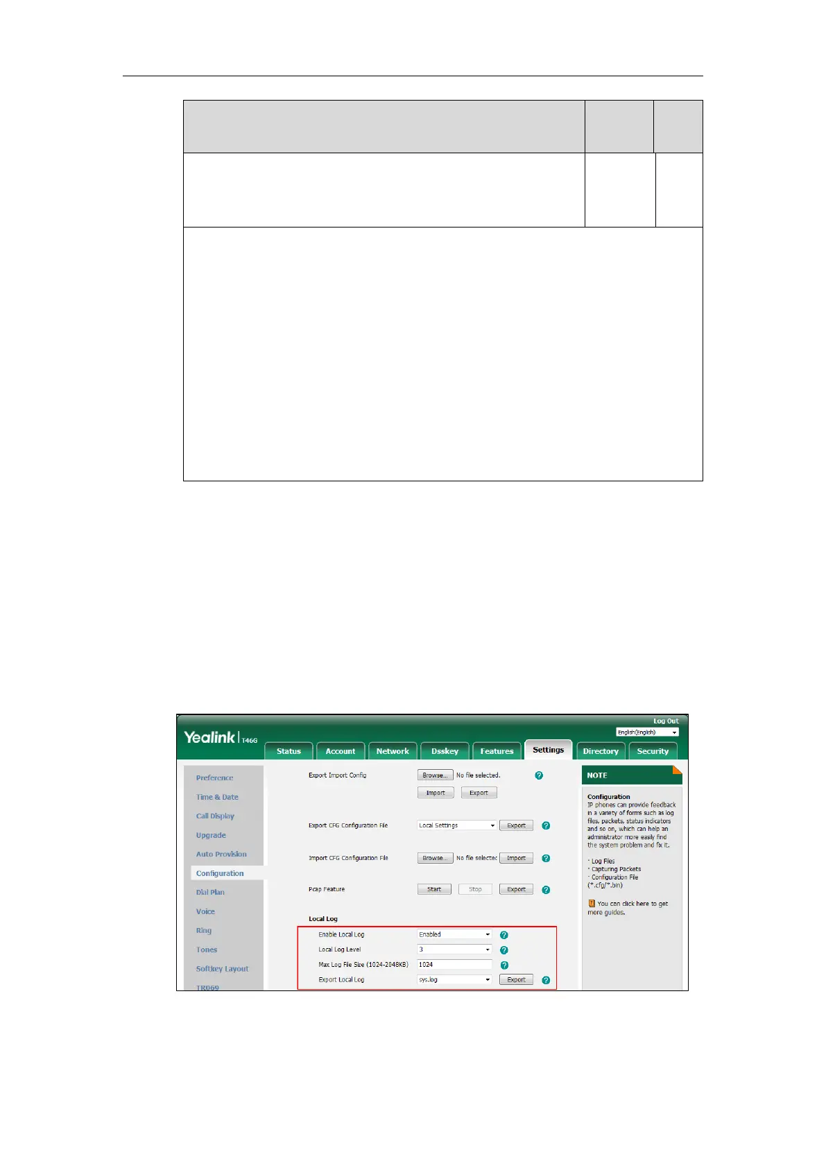 2. Select Enabled from the pull-down list of Enable Local Log.