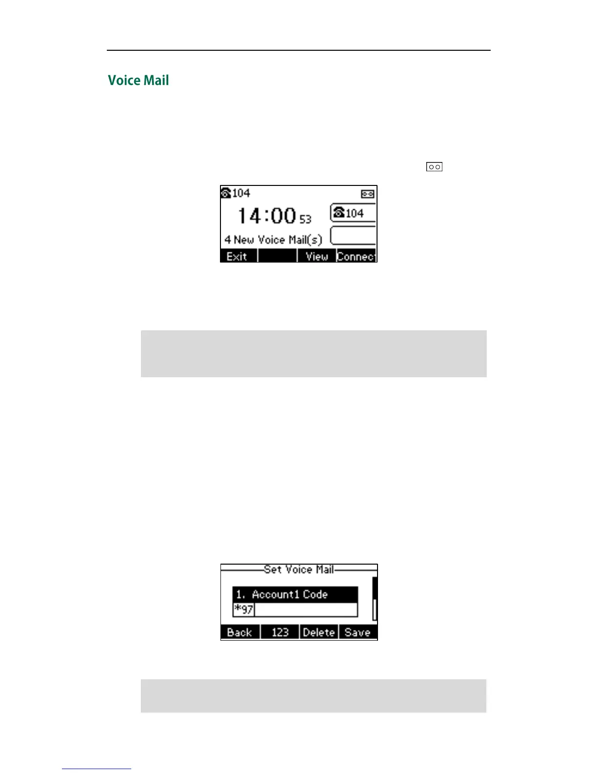 and the LCD screen will prompt “n New Voice Mail(s)” (“n” indicates the number of