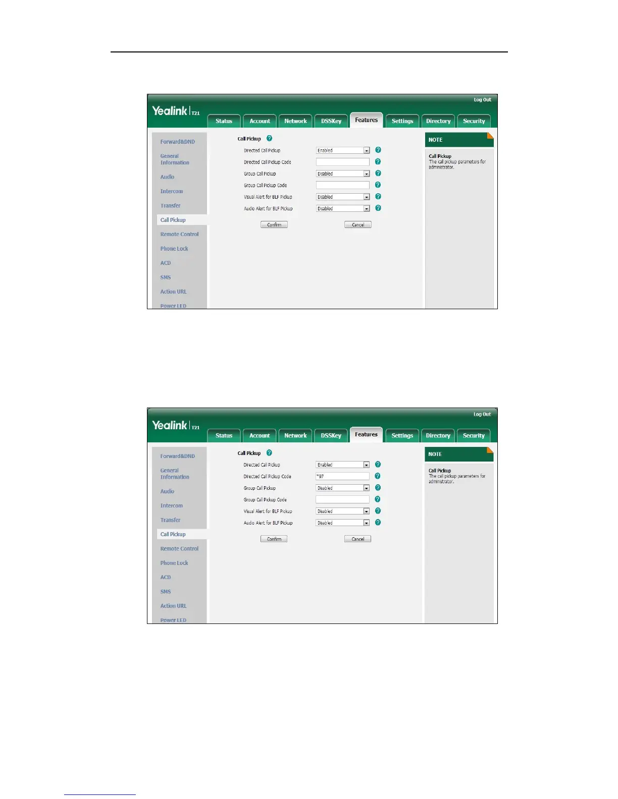 2. Select Enabled from the pull-down list of Directed Call Pickup.