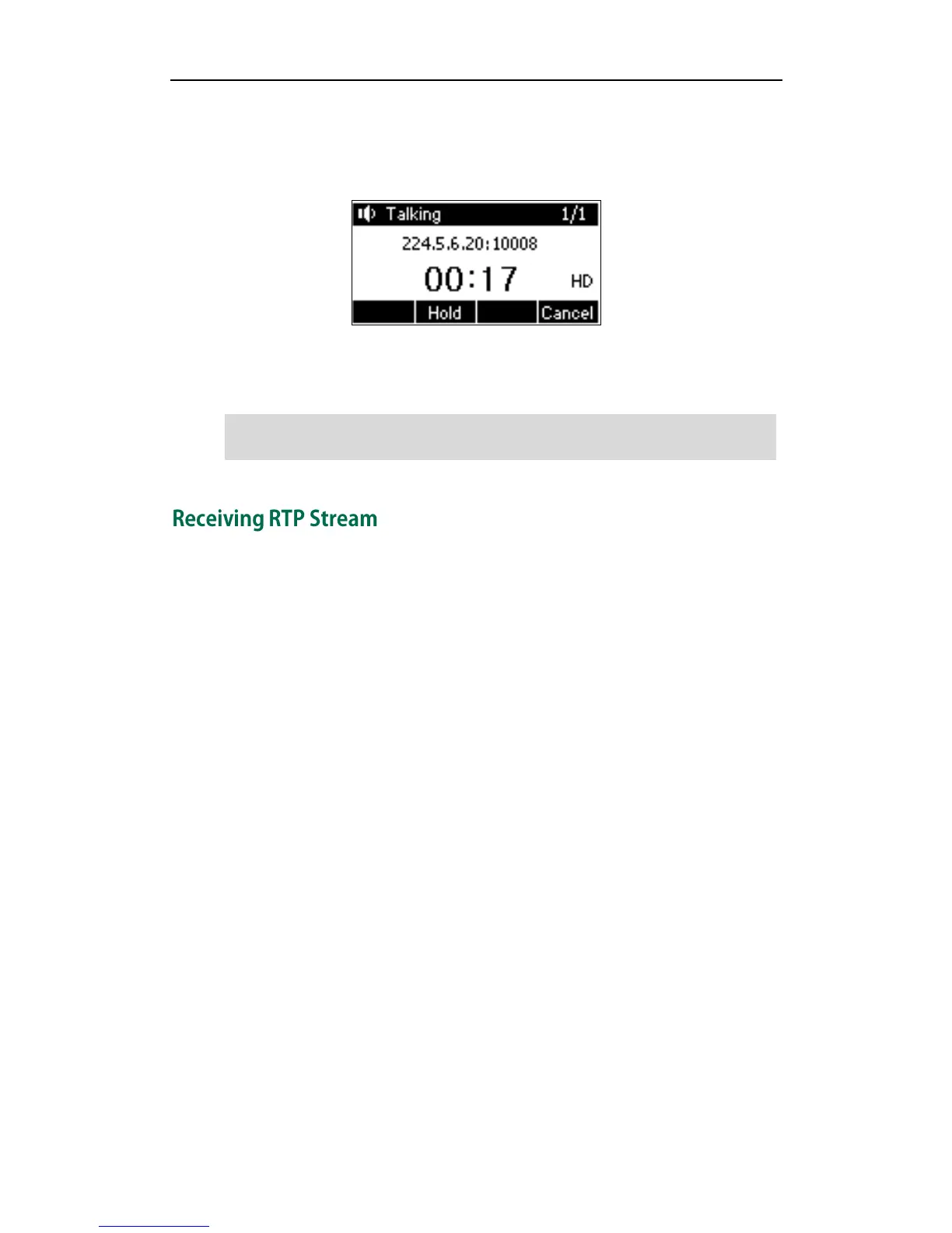 2. Press the Hold soft key to place the current multicast RTP session on hold.