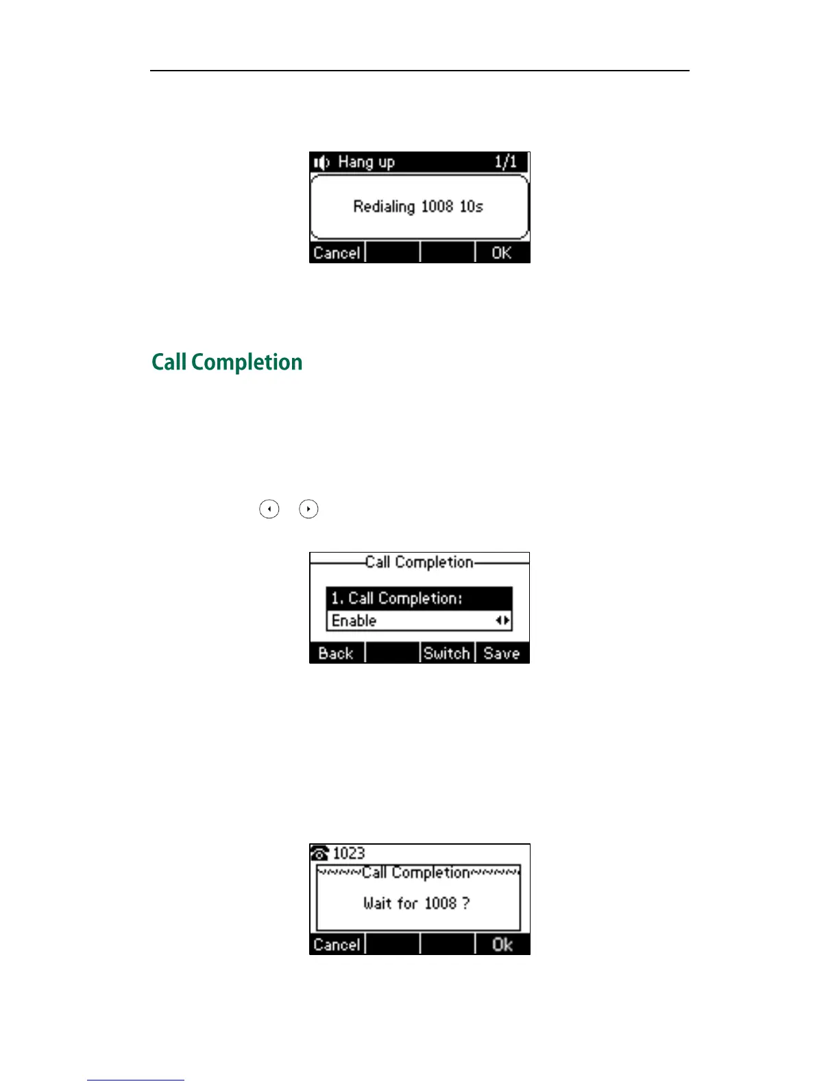 2. Press or , or the Switch soft key to select Enable from the Call Completion