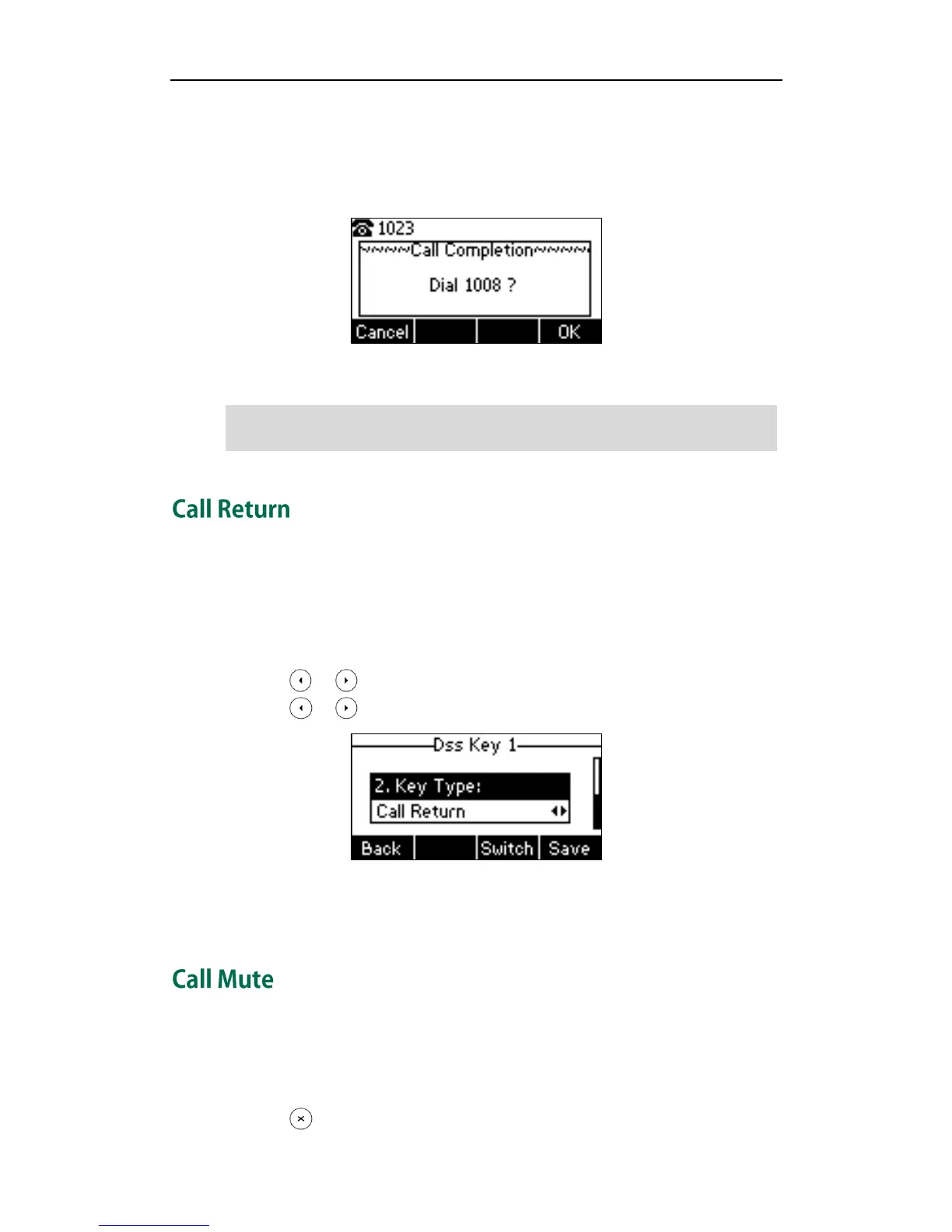 4. Press or , or the Switch soft key to select Call Return from the Key Type field.