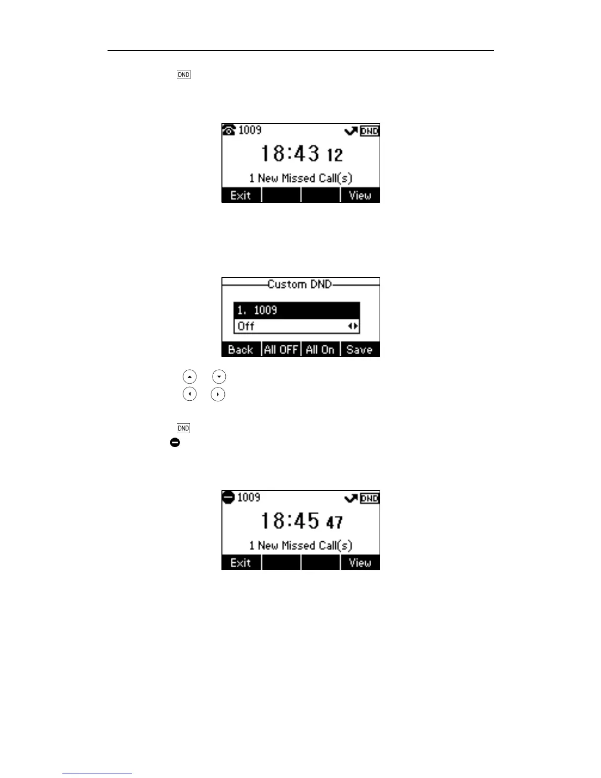 Incoming calls on this line will be rejected automatically and "n New Missed Call(s)"