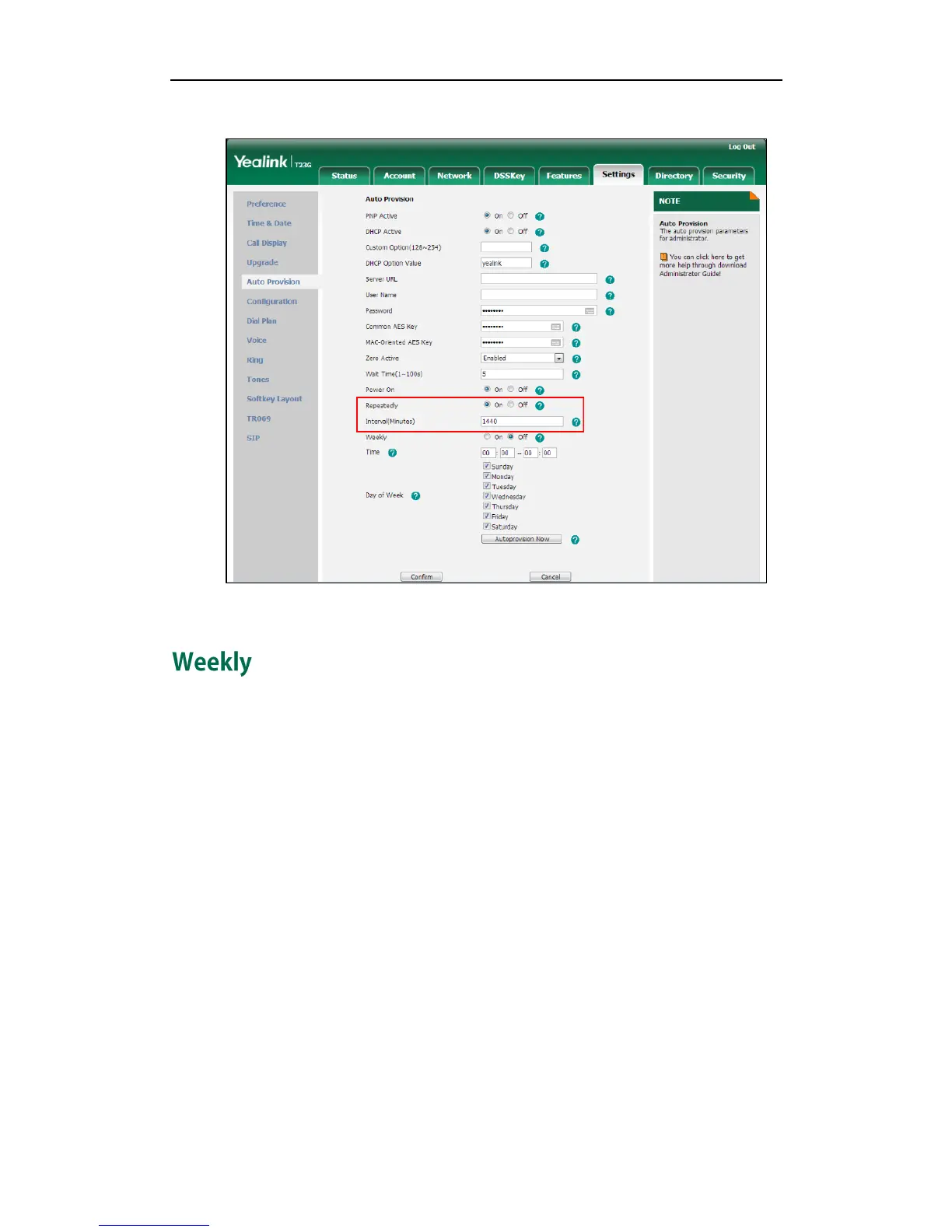 The IP phone performs the auto provisioning process at the fixed time every week. You