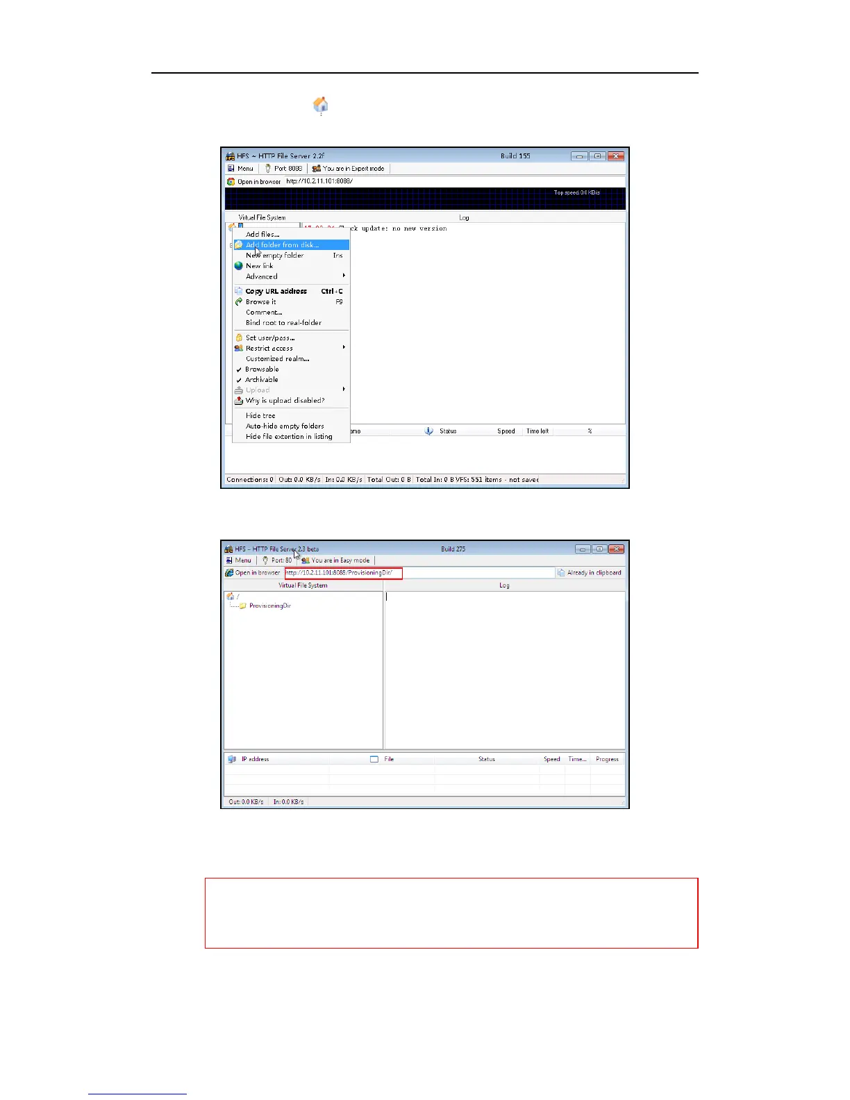 5. Check the server URL (e.g., http:// 10.2.11.101:8088/ProvisioningDir) by clicking