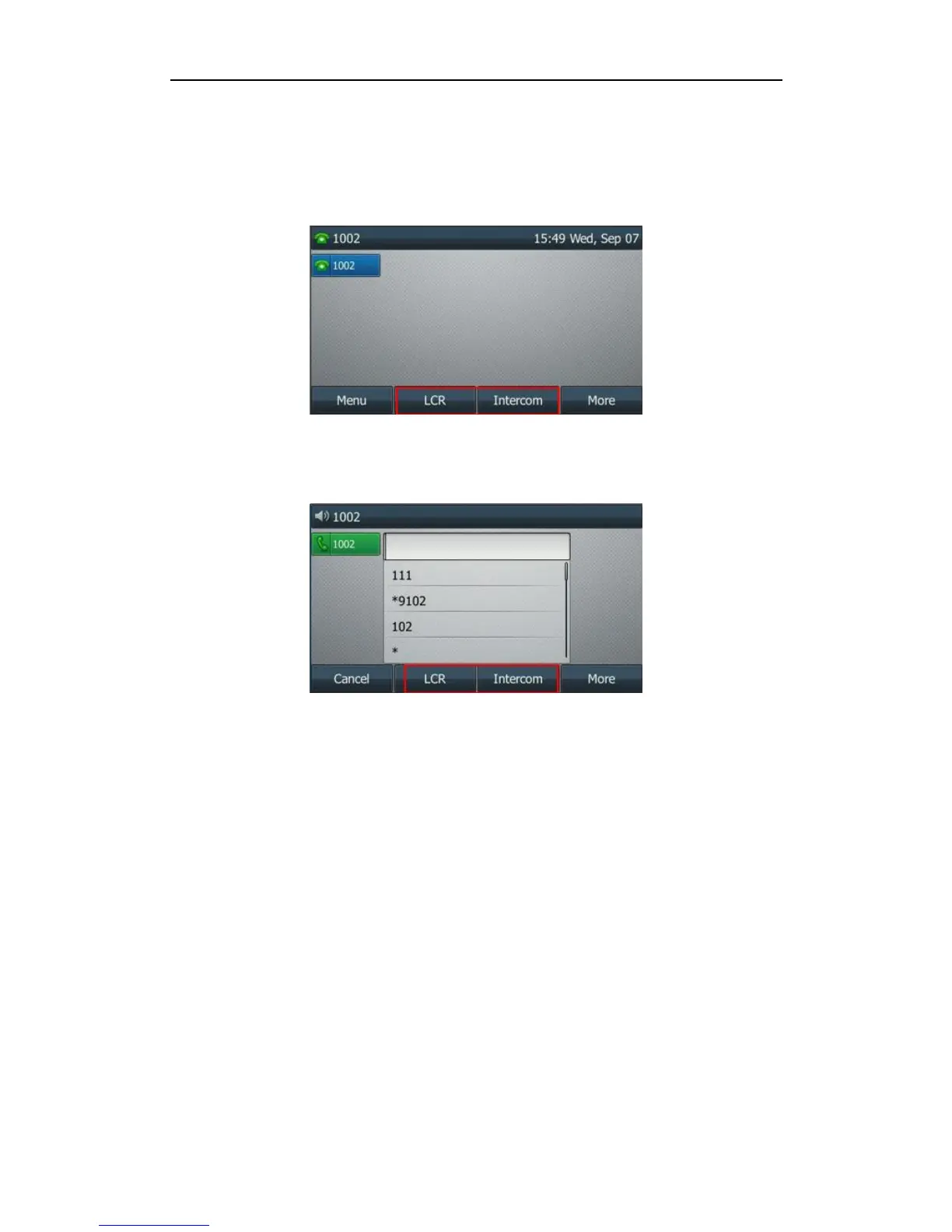 Press the Intercom soft key to perform the macro definition of the action “*64$P1N12$”.