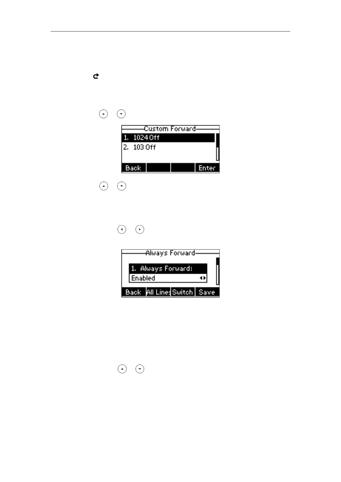 3. Press or to select the desired forwarding type, and then press the Enter