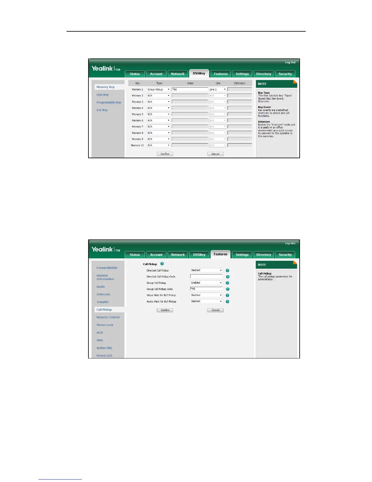 To configure group call pickup feature on a phone basis via web user interface: