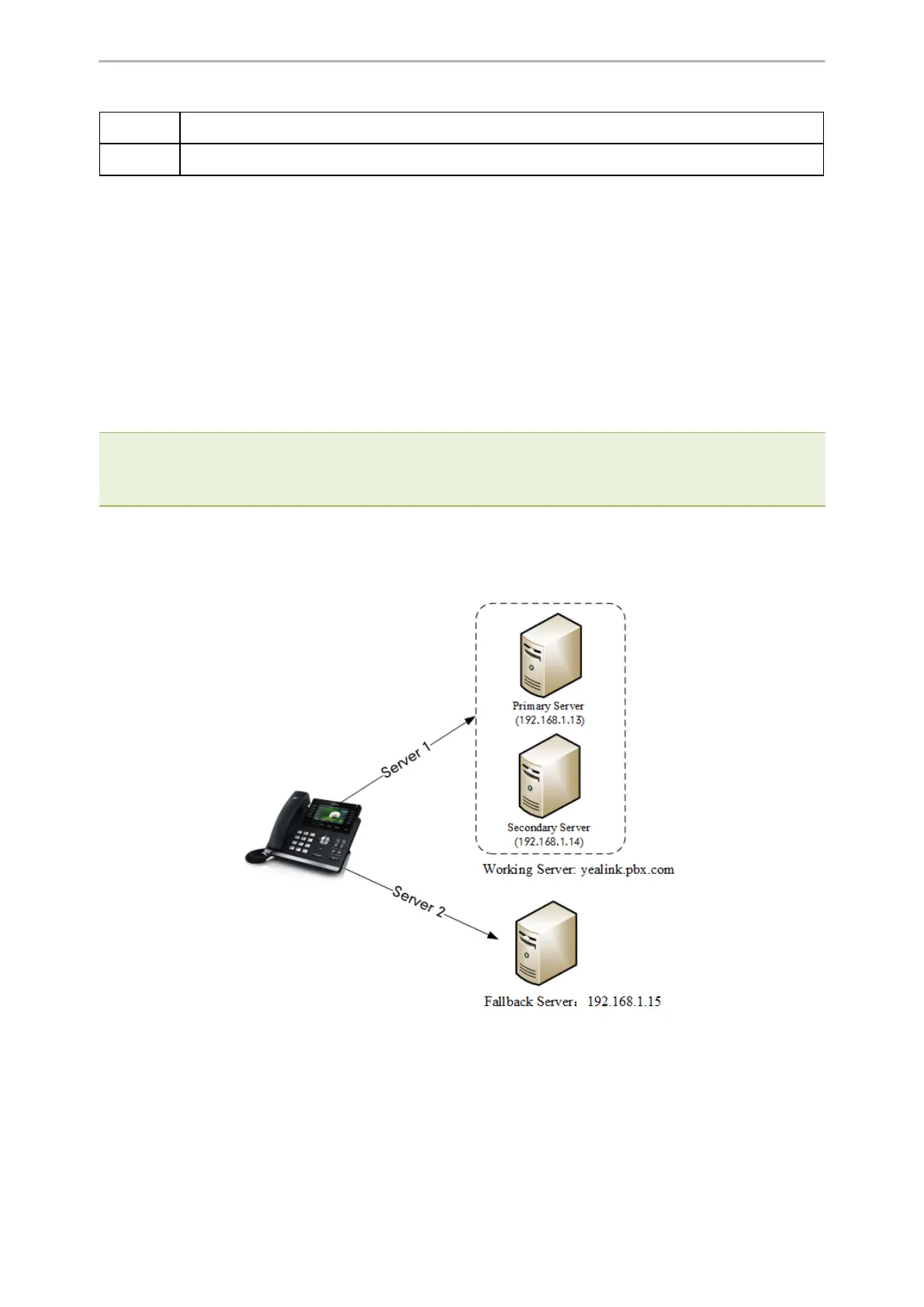 the working server. The phones support configuration of two servers per SIP registration for the fallback purpose.