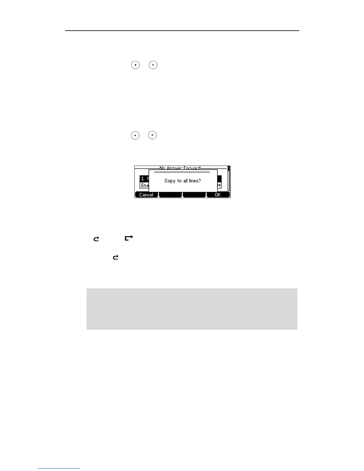 4) (Optional.) Enter the no answer forward on code or off code respectively in