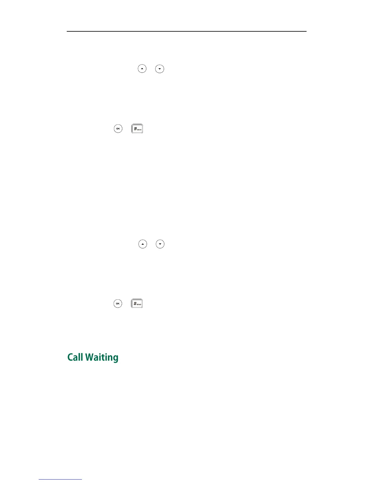 You can enable or disable call waiting on the phone. If call waiting is enabled, you can