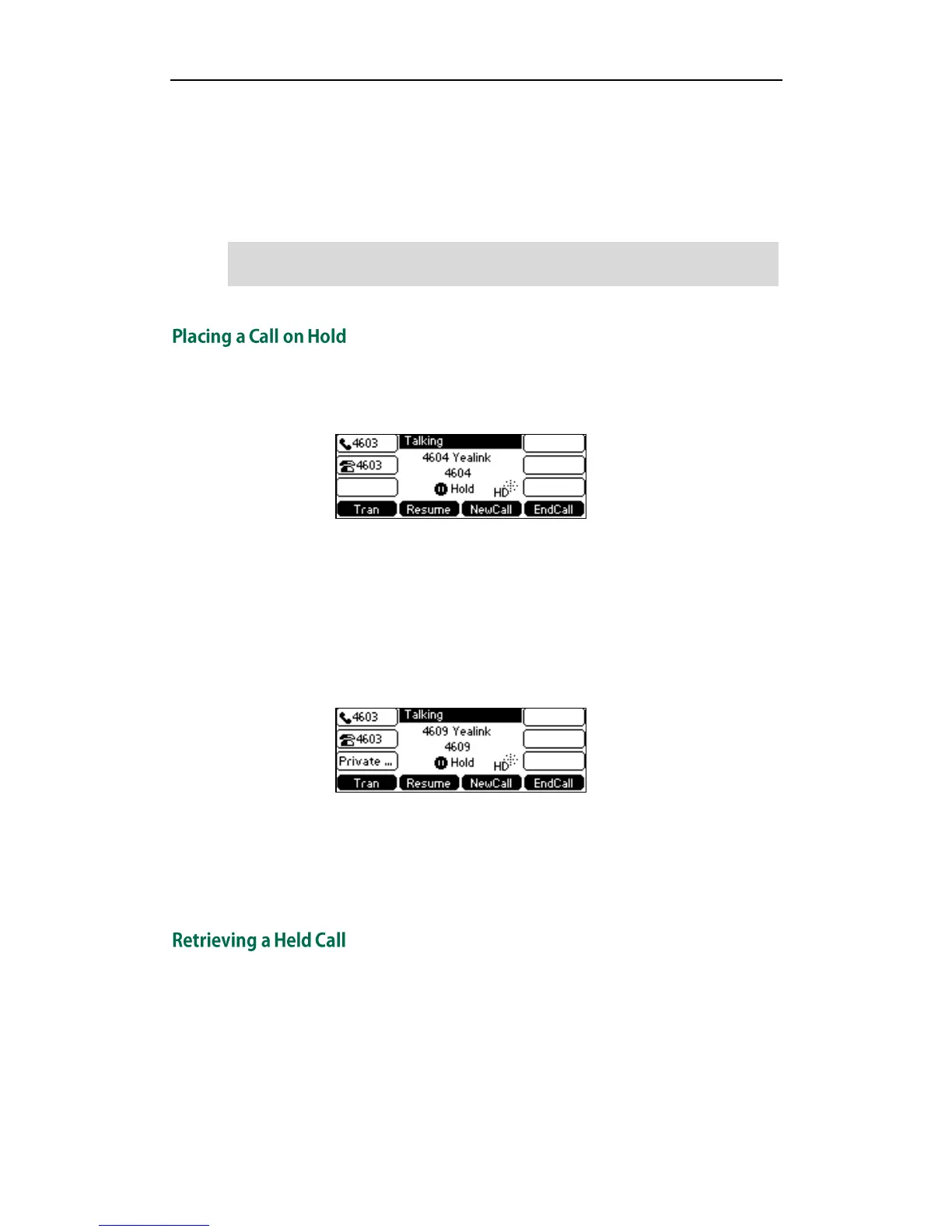 1. Press the PriHold soft key or private hold key on phone A when there is an active