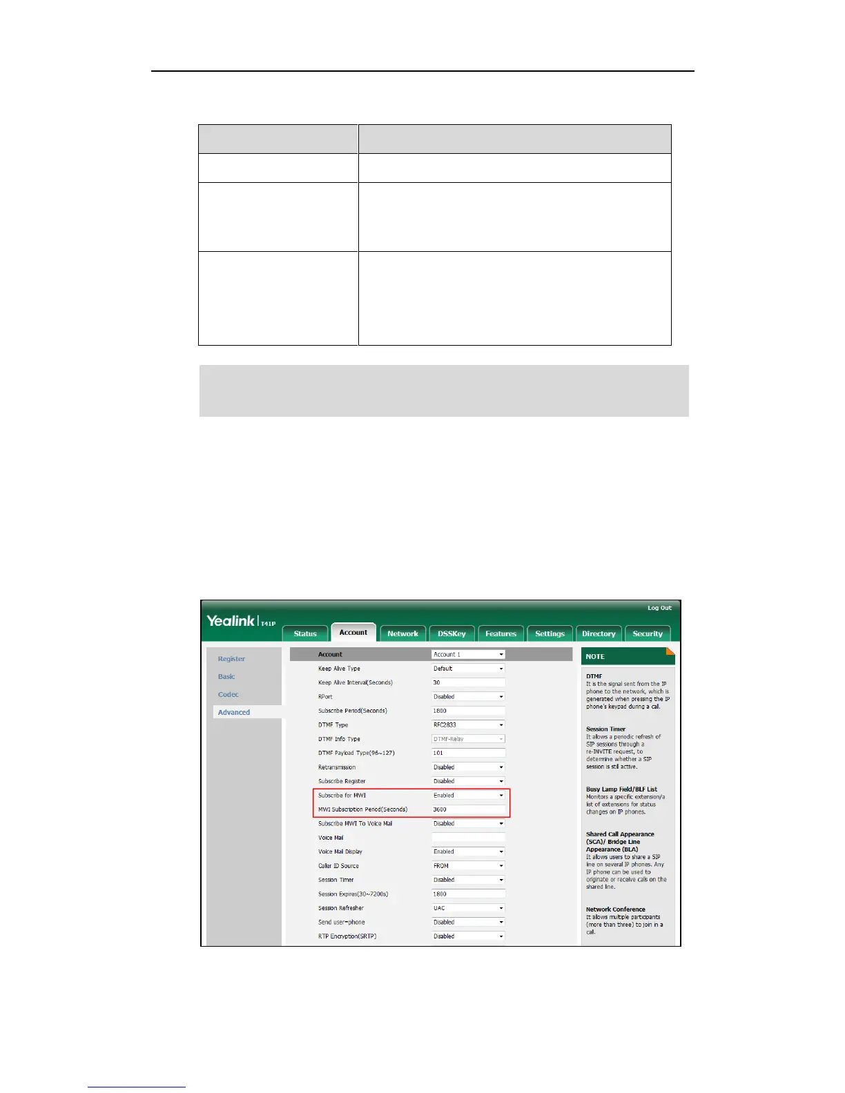 3. Select Enabled from the pull-down list of Subscribe for MWI.