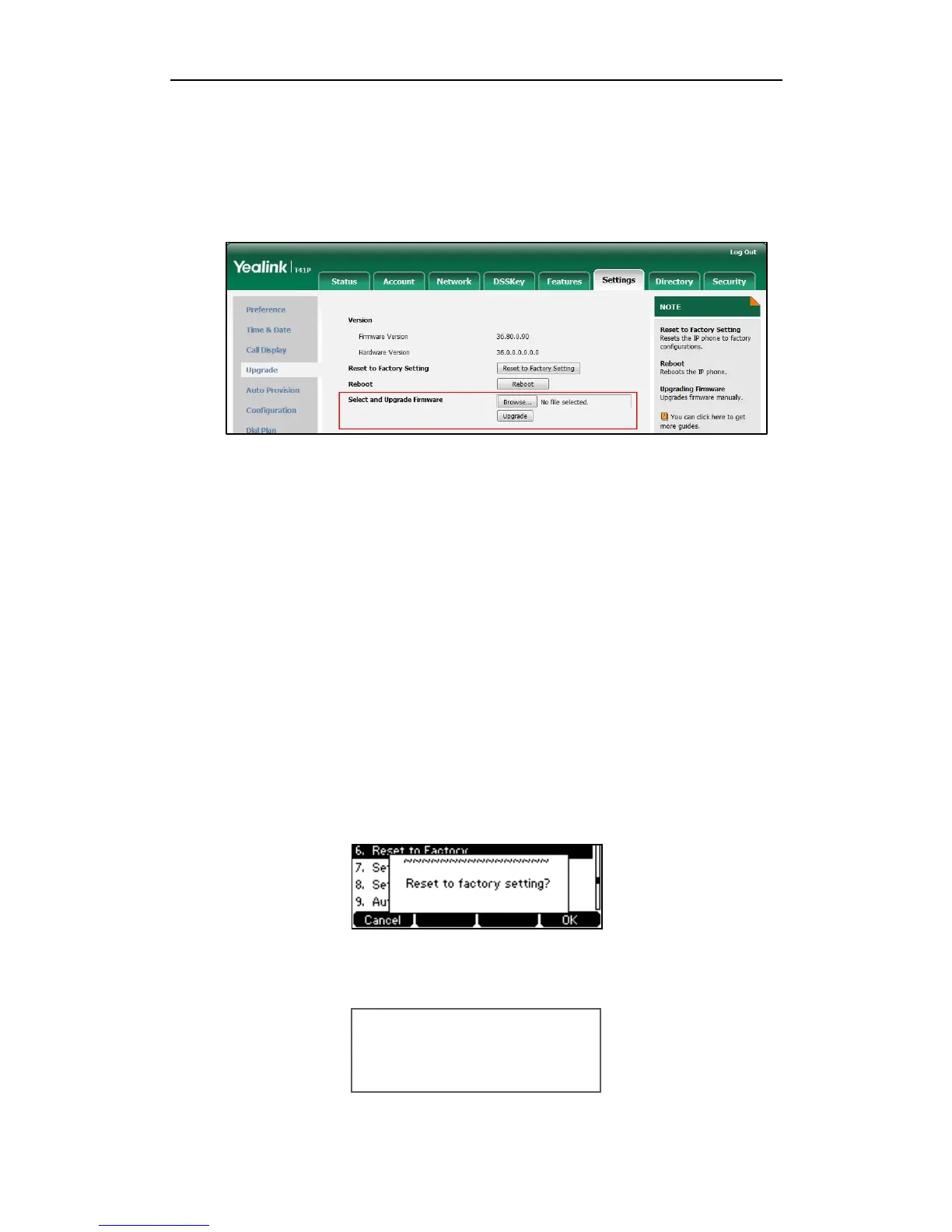 The web user interface prompts “Firmware of the SIP Phone will be updated. It will