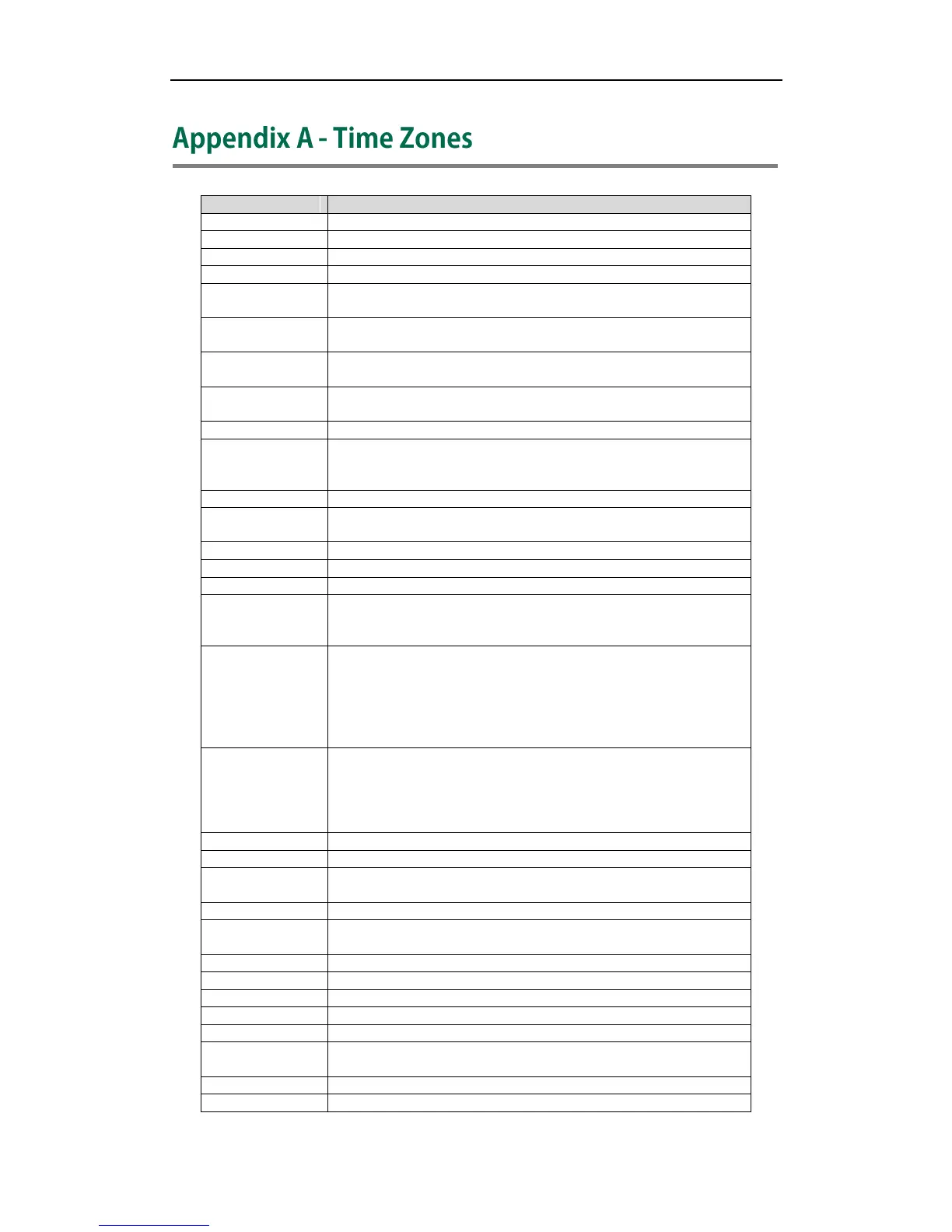 Appendix A-Time Zones