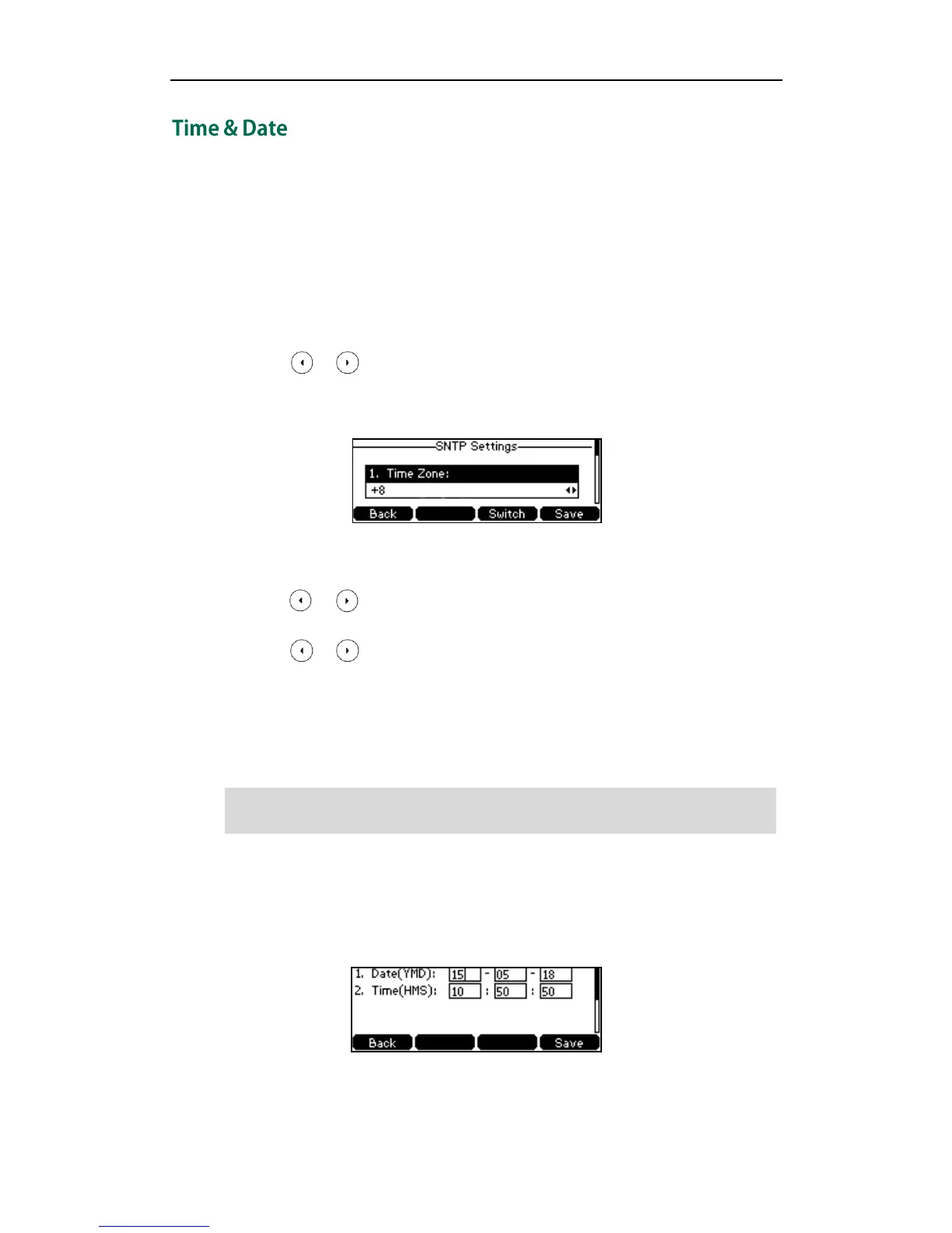 (SNTP) server automatically, or configure the date and time manually. If the phone