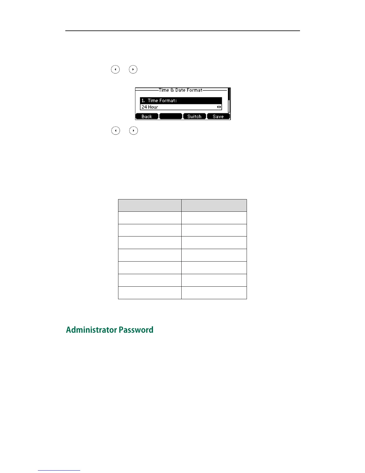 2. Press or , or the Switch soft key to select the desired time format (12 Hour