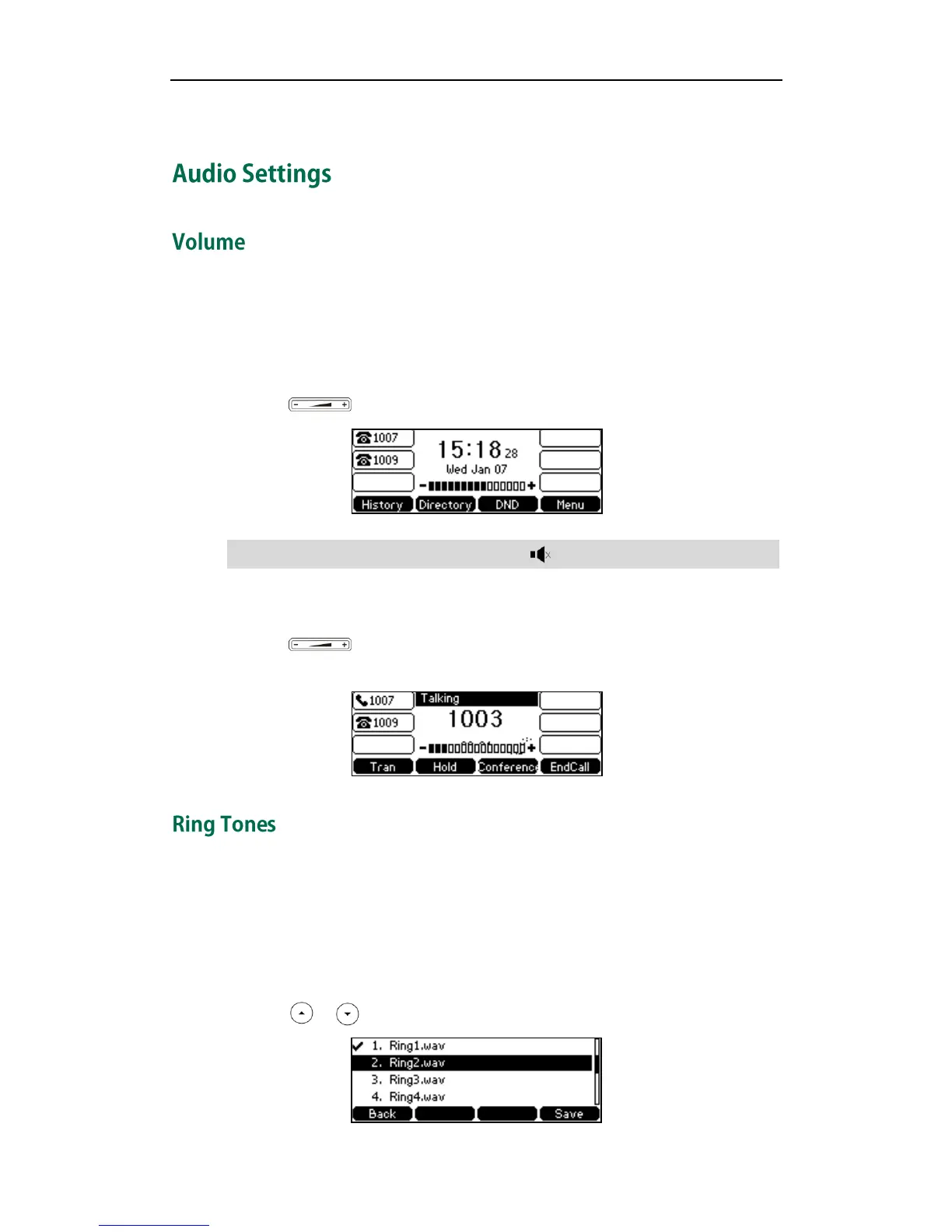 can also press the Volume key to adjust the receiver volume of currently engaged audio