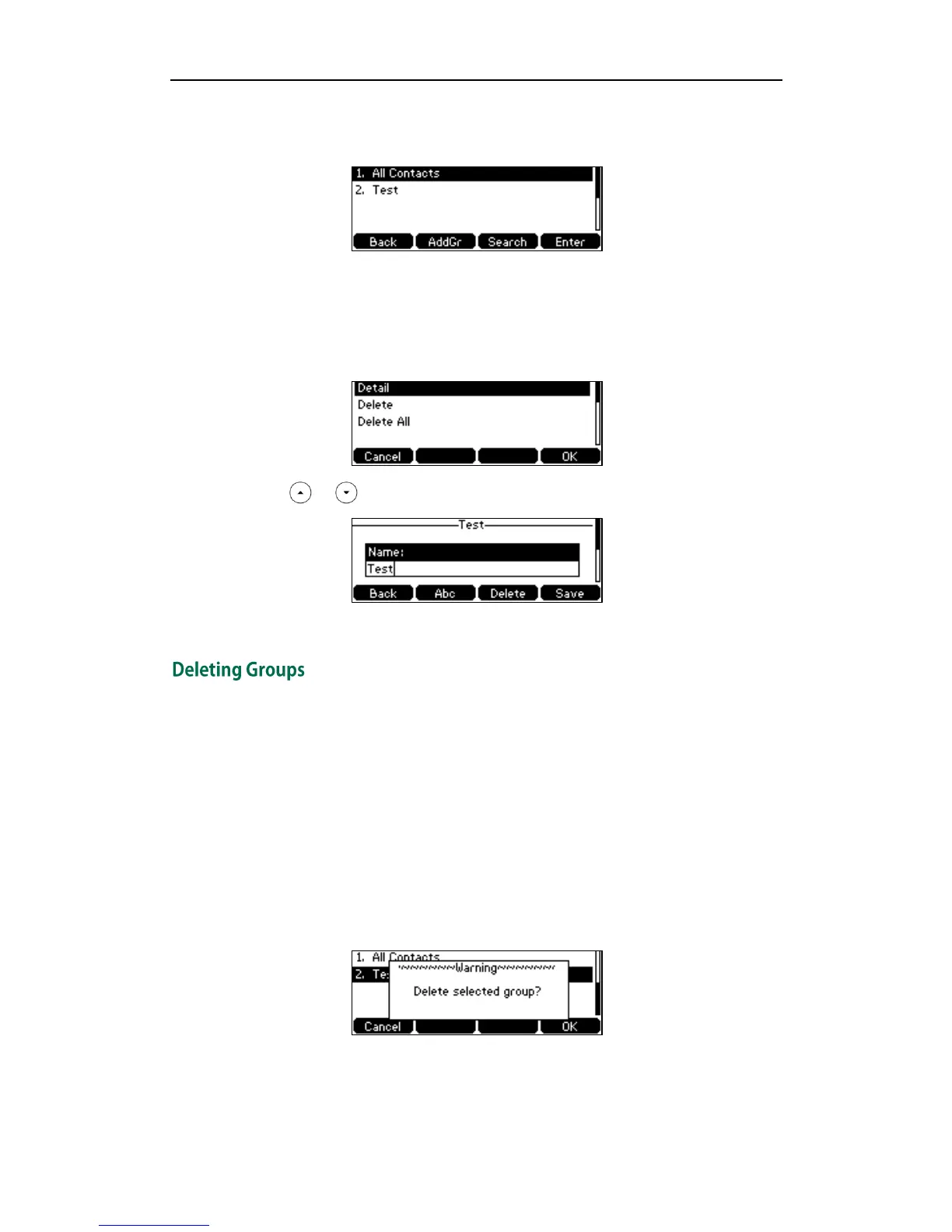 You can also delete all groups by pressing the Option soft key, and then select Delete