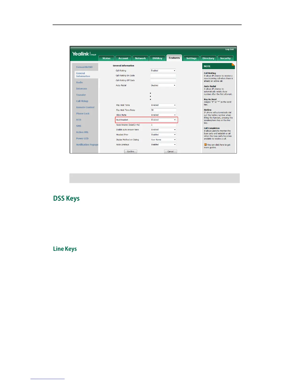 There are two types of DSS keys: Line Keys and Programable Keys. Details will be