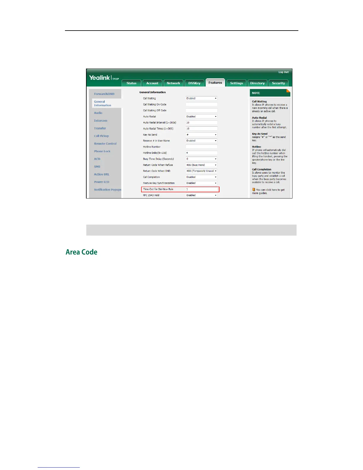 1. Click on Settings->Dial Plan->Area Code.