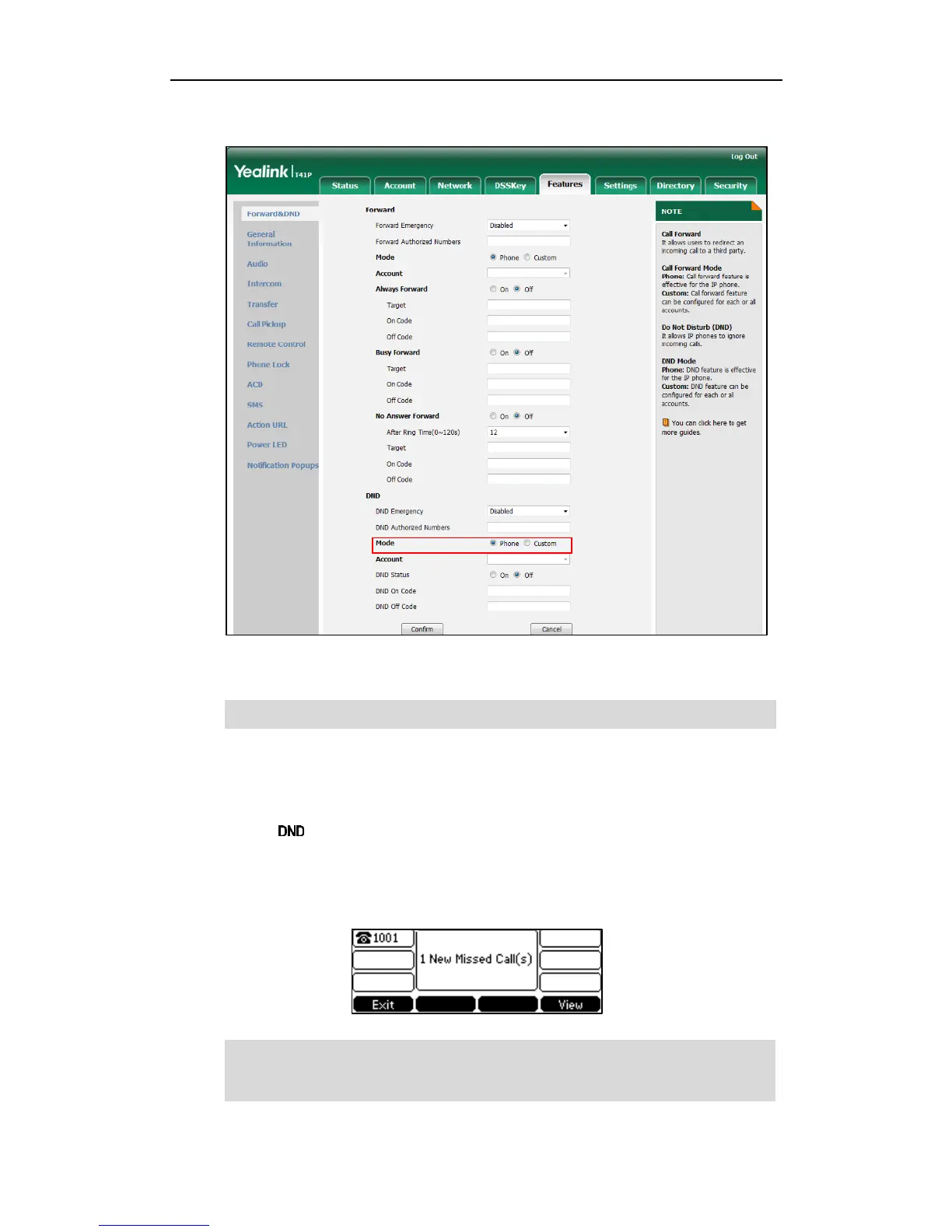 Incoming calls will be rejected automatically and "n New Missed Call(s)" ("n"