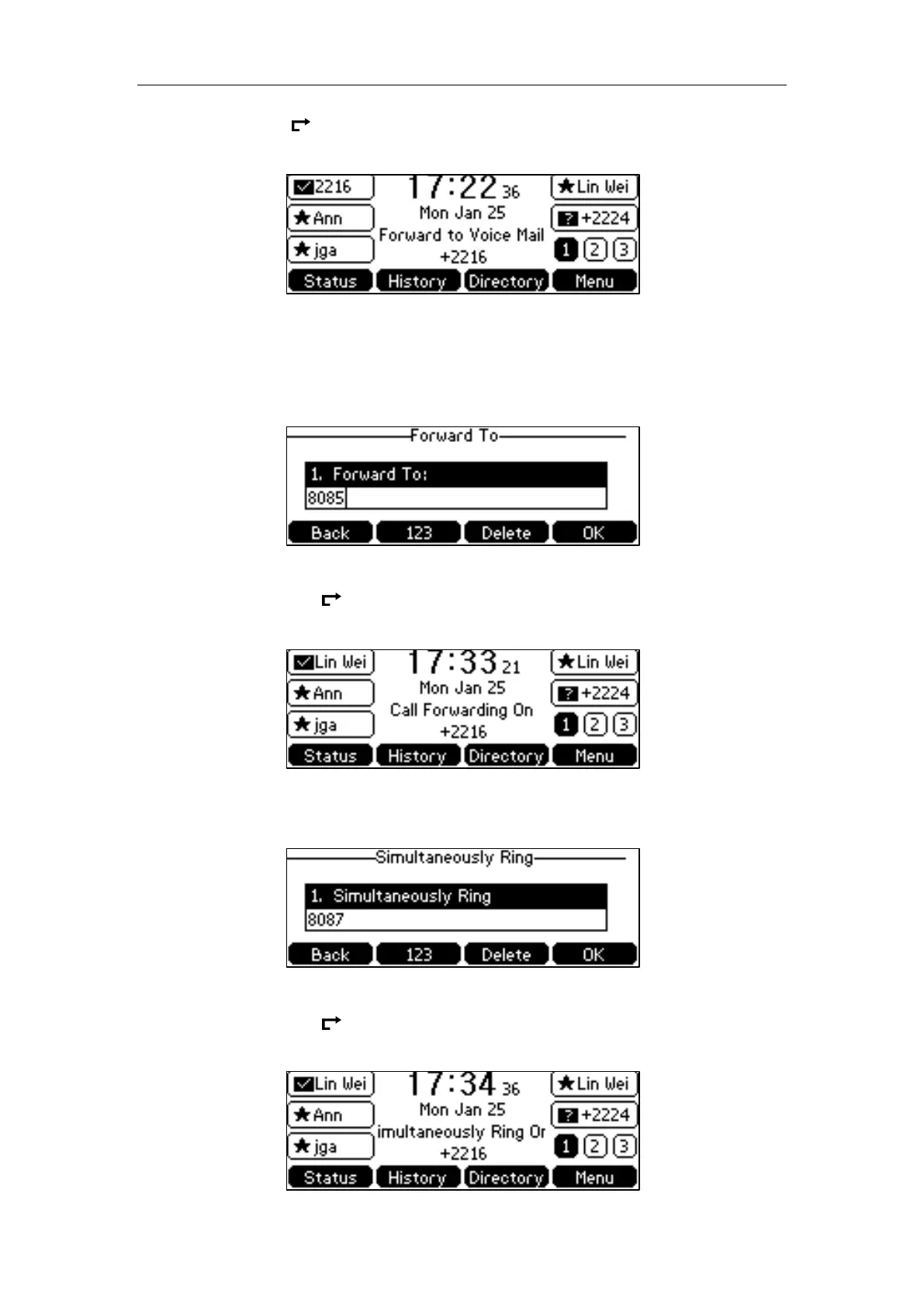 c) If you select Simultaneously Call, and then press the OK soft key: