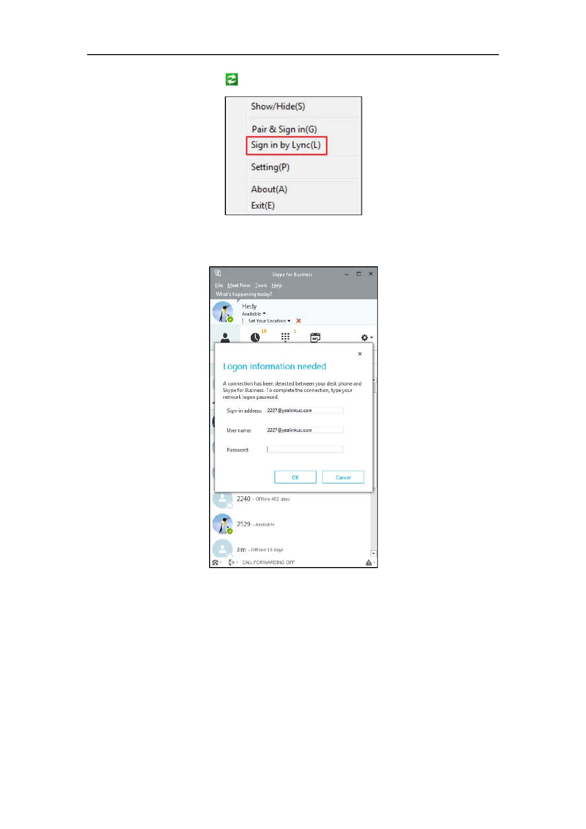 1. Right-click on , and then select Sign in by Lync(L).
