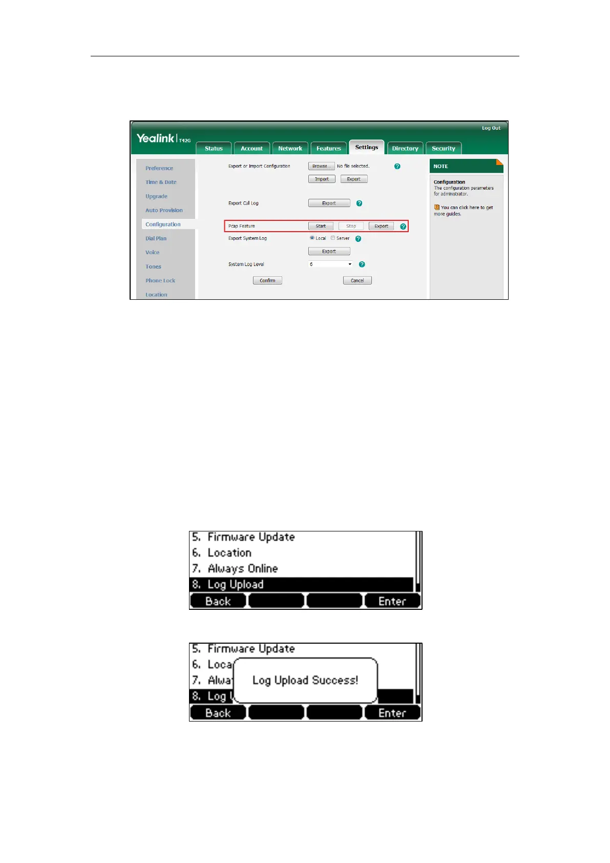 1. Press Menu->Settings->Basic Settings->Log Upload.