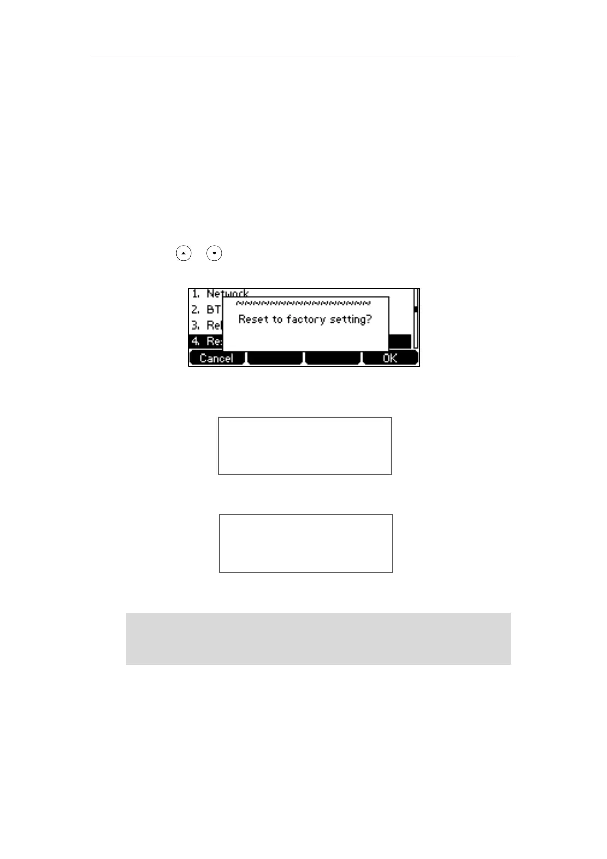 Reset of the phone may take a few minutes. Do not power off until the phone starts up