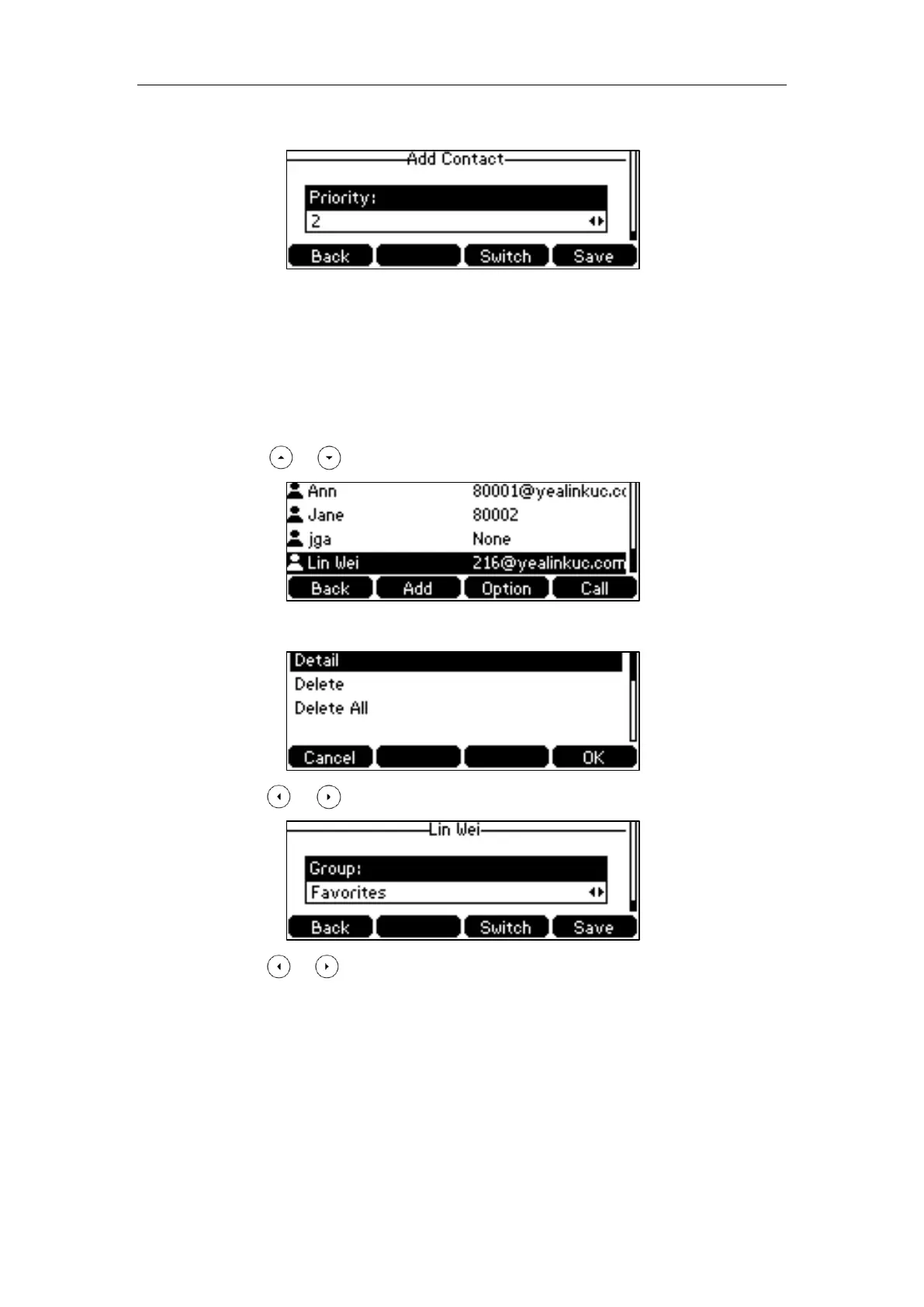 4. Press or , or the Switch soft key to select Favorites from the Group field.