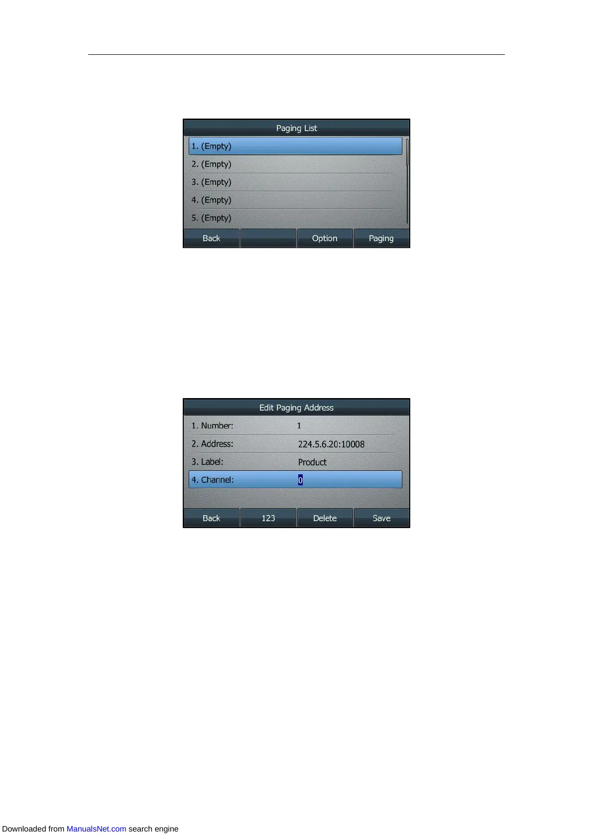 Menu->Features->Paging List on other IP phones to configure the paging list.