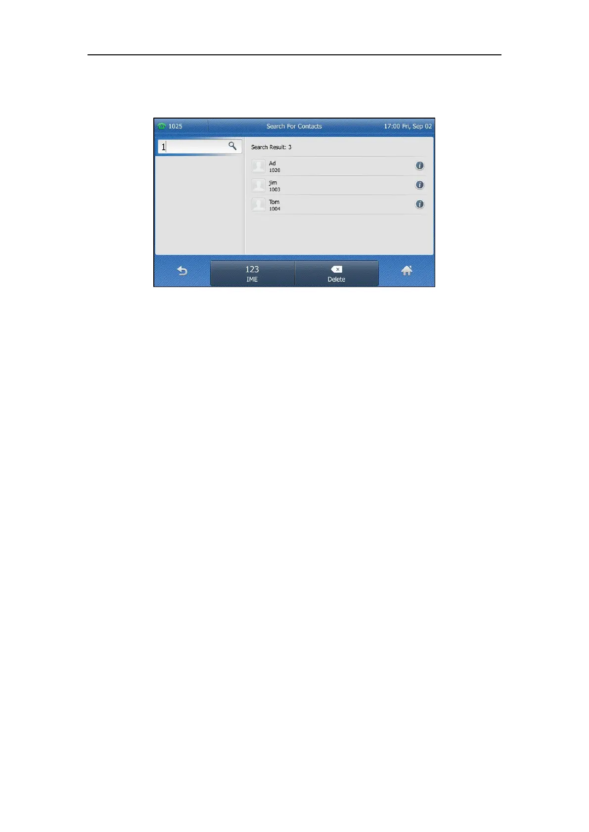 3. Enter a few continuous characters of the contact name or continuous numbers of the