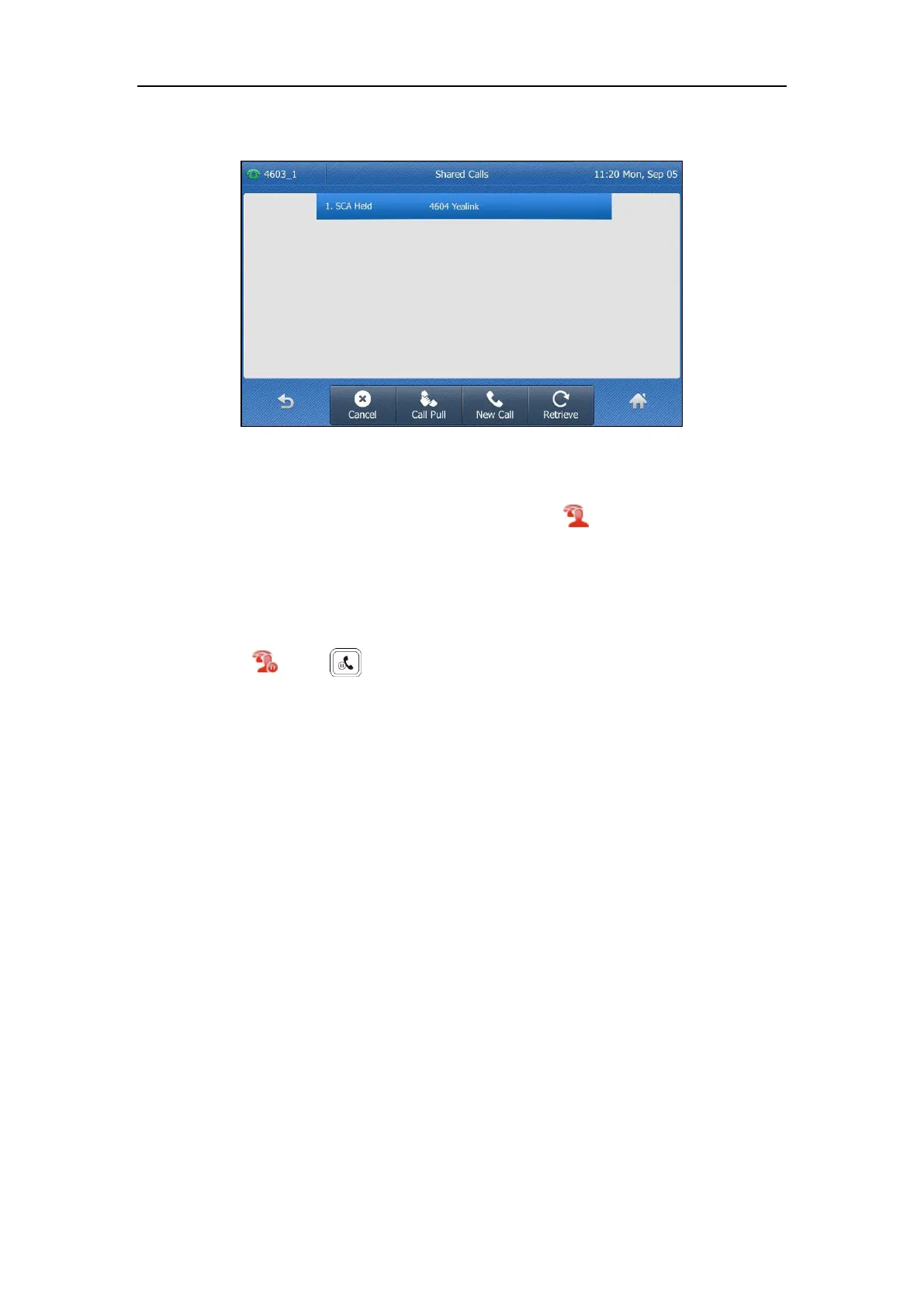 The Cancel, Call Pull, New Call and Retrieve soft keys appear on the touch screen.