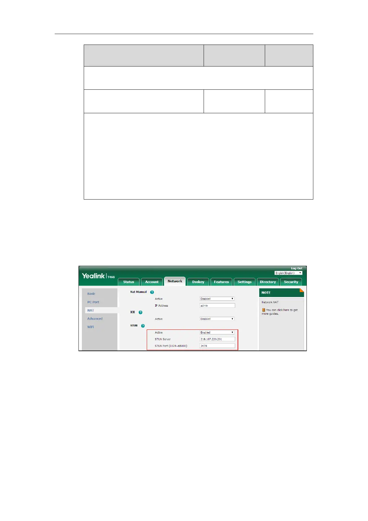 To configure NAT traversal and STUN server via web user interface: