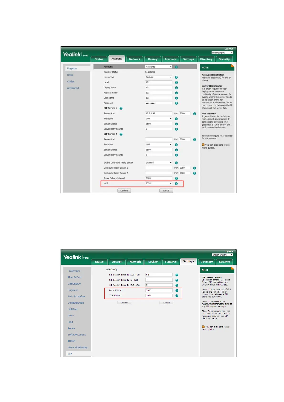 To configure local SIP port and TLS SIP port via web user interface: