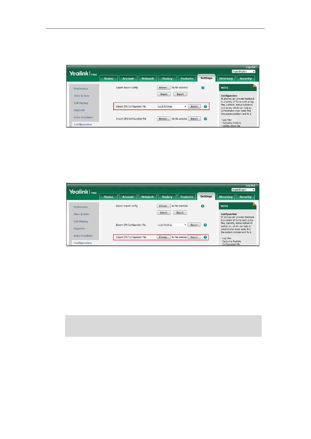 2. Select Local Settings from the pull-down list of Export CFG Configuration File, and then