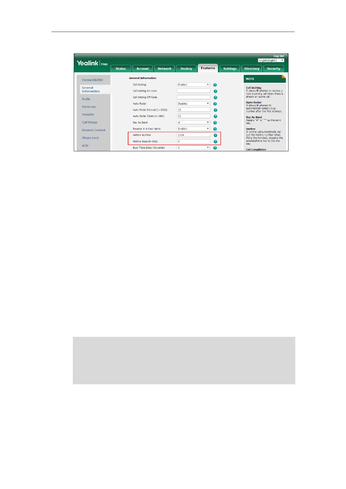 3. Enter the waiting time (in seconds) in the Hotline Delay field.