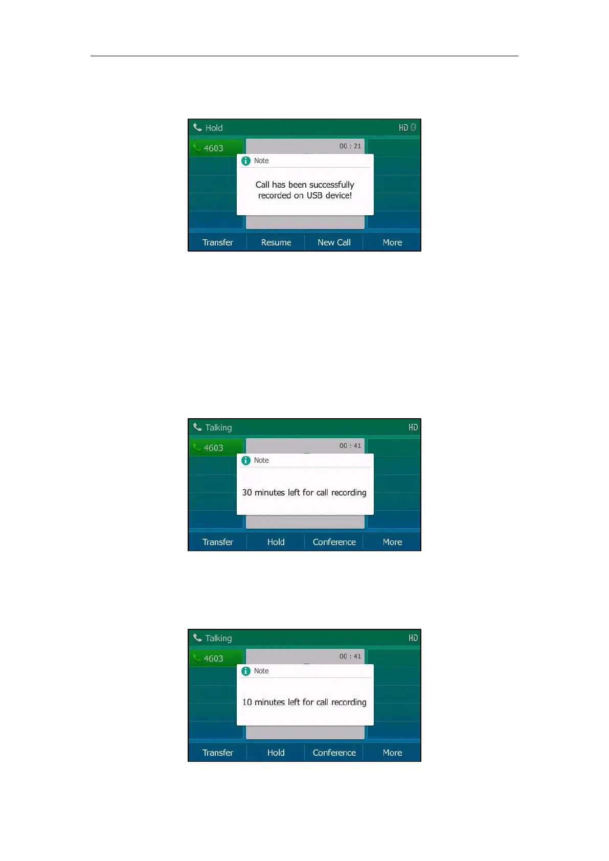 - Press the HOLD key or Hold while recording, recording is paused. Then the pause