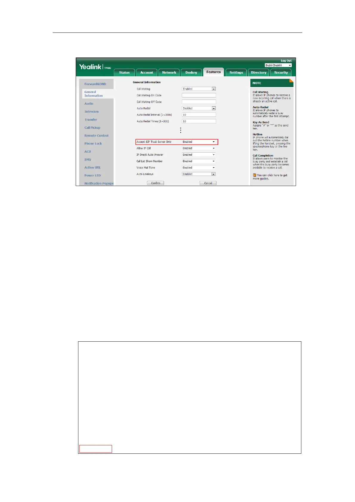 2. Select the desired value from the pull-down list of Accept SIP Trust Server Only.
