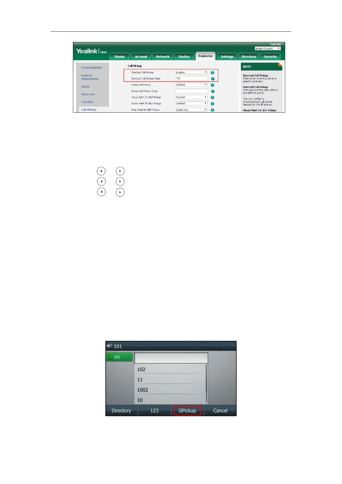 pickup key or the GPickup soft key. This feature depends on support from a SIP server. For