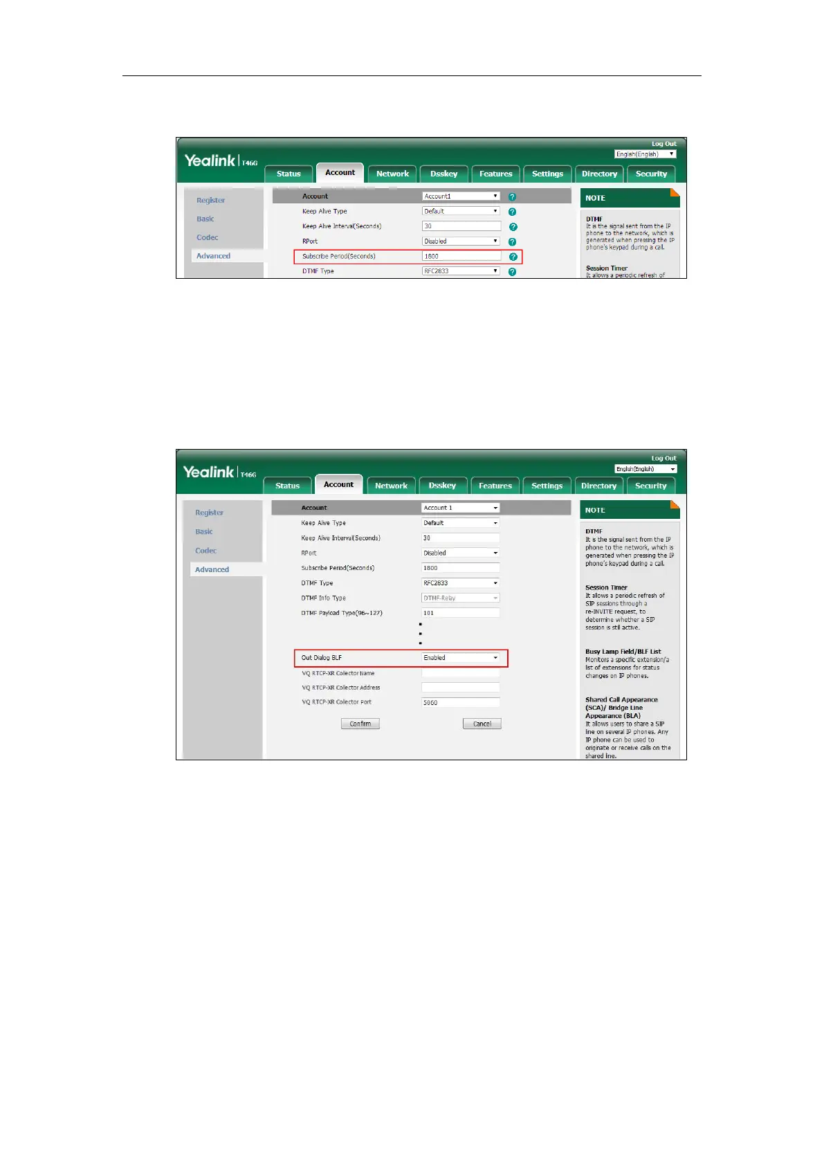 3. Enter the desired period of BLF subscription in the Subscribe Period(Seconds) field.